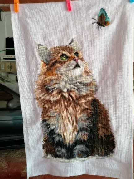 Кот и бабочка (2):14CT:37 × 47 см11CT:45 × 57 смЦвета резьбы: 16 цветов