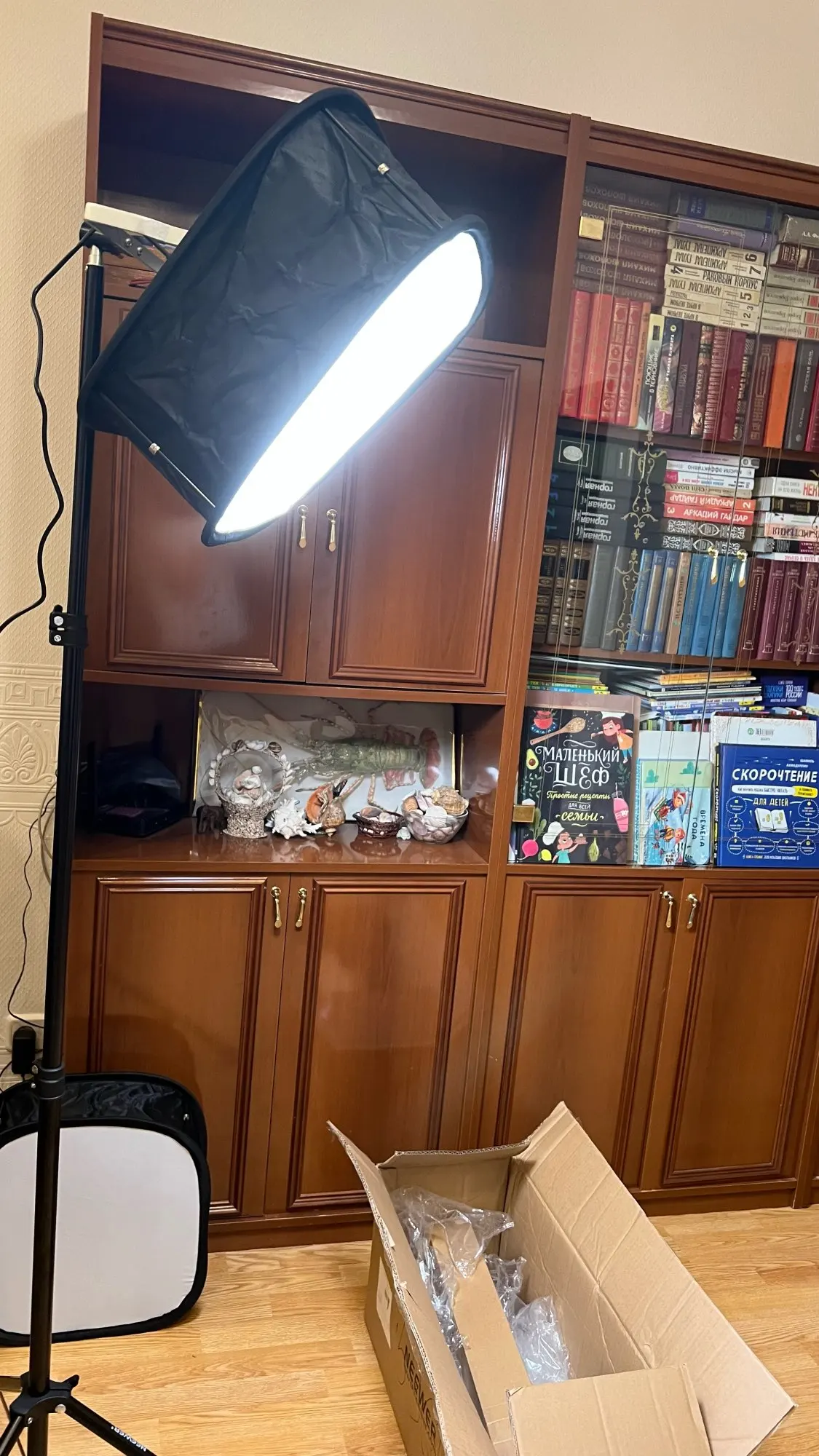 Берёшь в руки - маешь вещь. Все из алюминия, никакого дешманского пластика. Корпус, шторки, крепежи. Вид презентабельный , не стыдно с таким снимать. Я специально выбирал с экраном регулировки , чтобы чётко было понятно - какой свет выставили . Стойки тоже с фирменной надписью. Один минус - в Россию больше не поставляют
