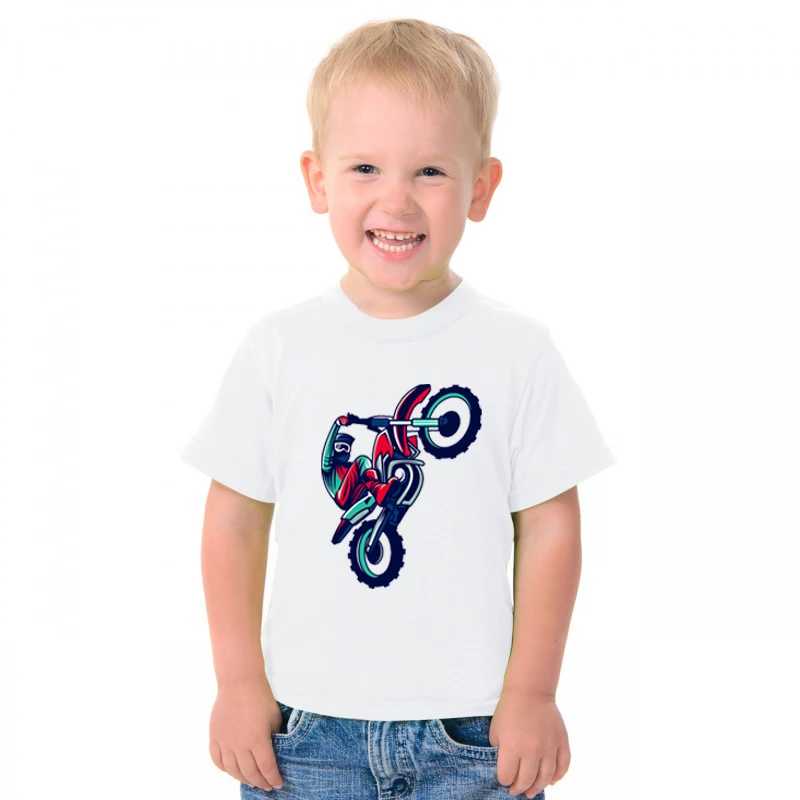 Футболка для мальчиков и девочек, с принтом мотоцикла, мотокросса, летняя уличная одежда для подростков