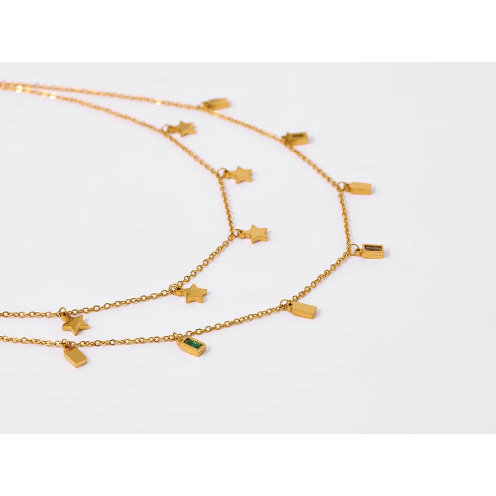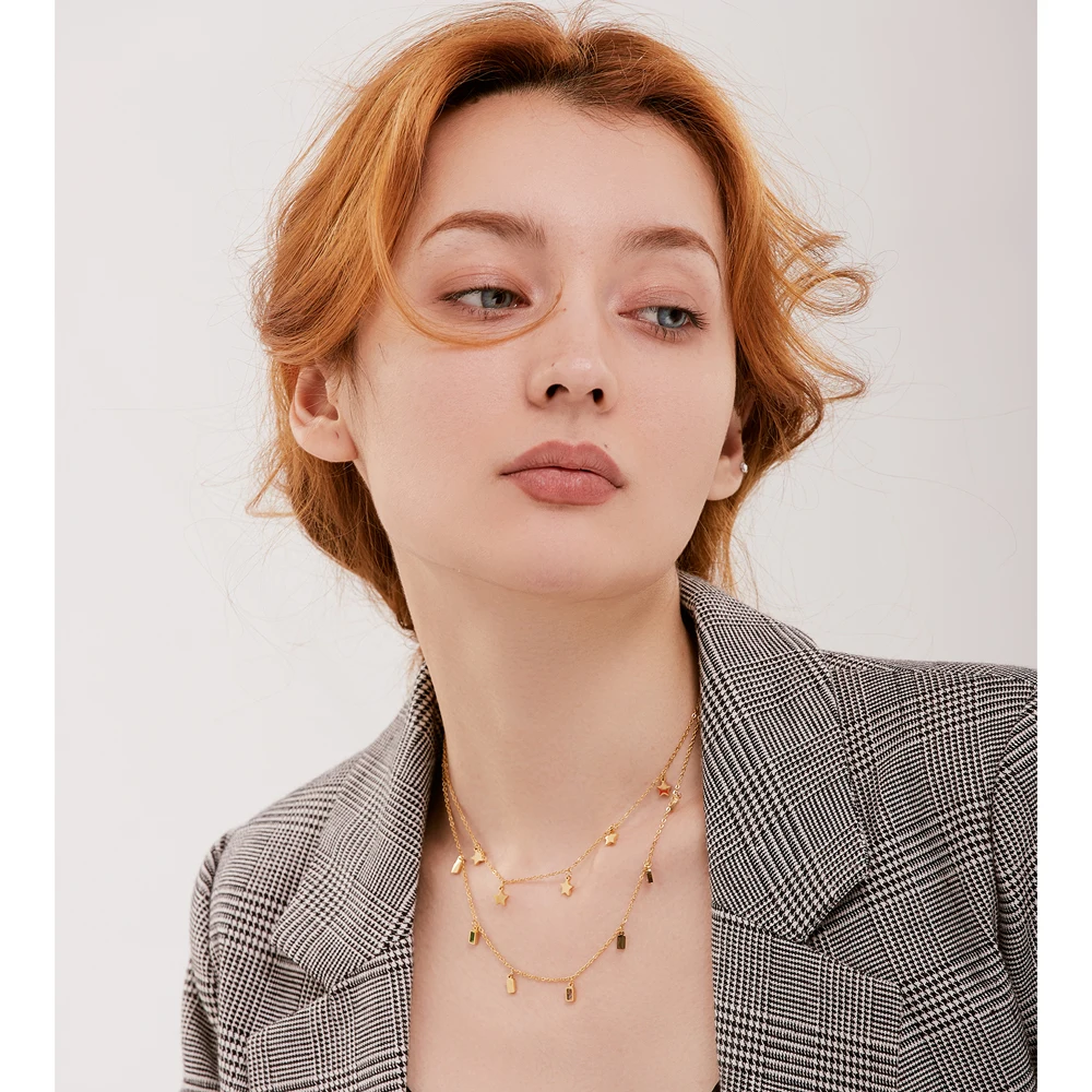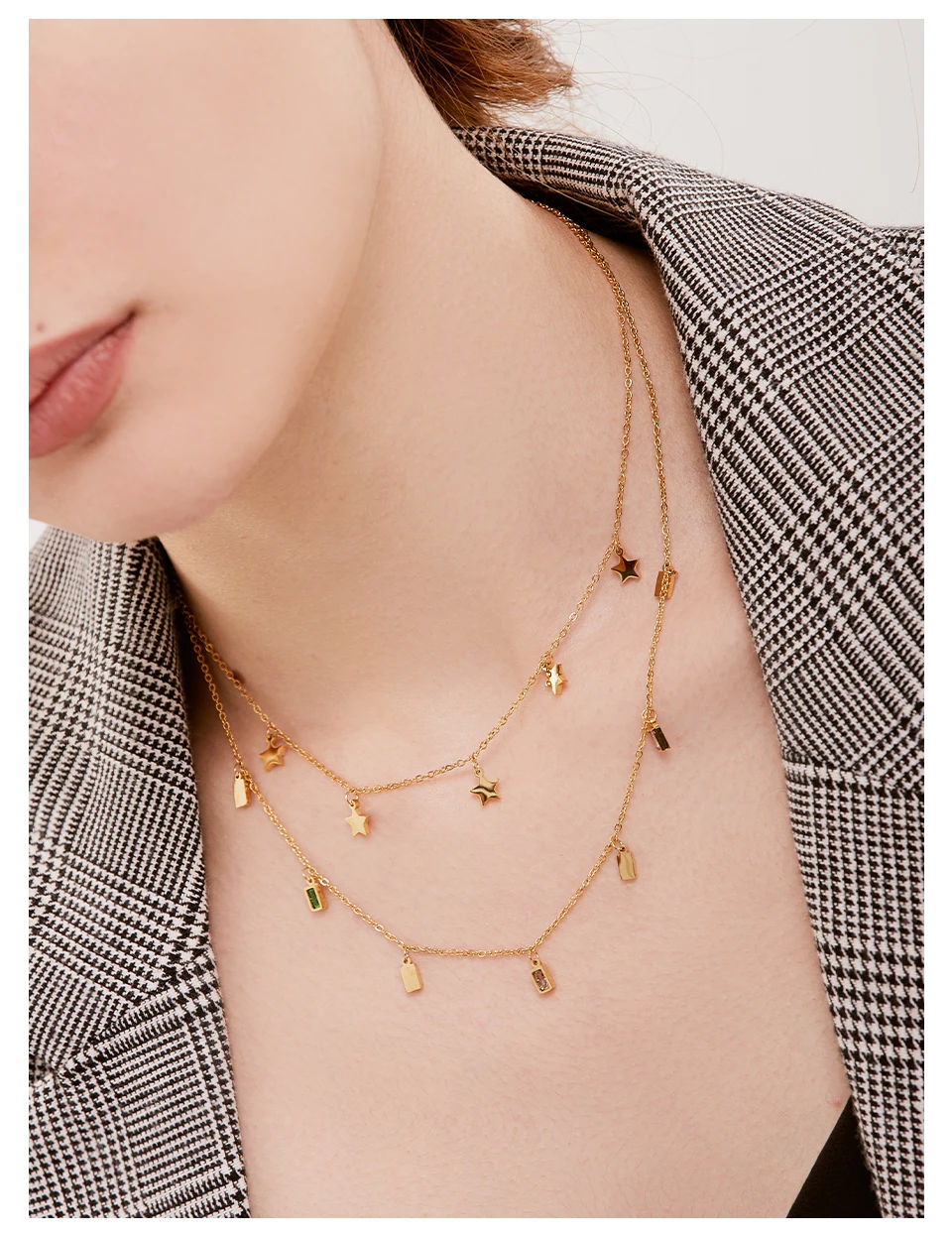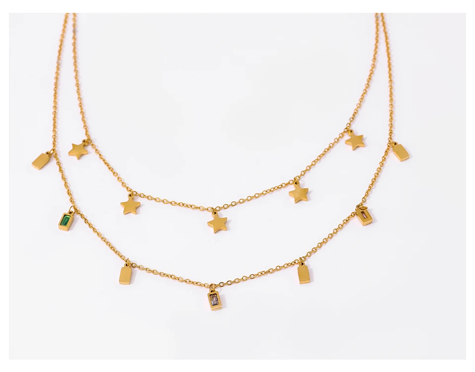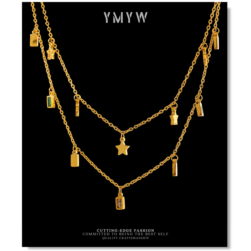 YMYW водонепроницаемое тонкое ожерелье из нержавеющей стали с воротником-цепочкой, изысканное разноцветное Двухслойное ожерелье с кубическим цирконием для женщин