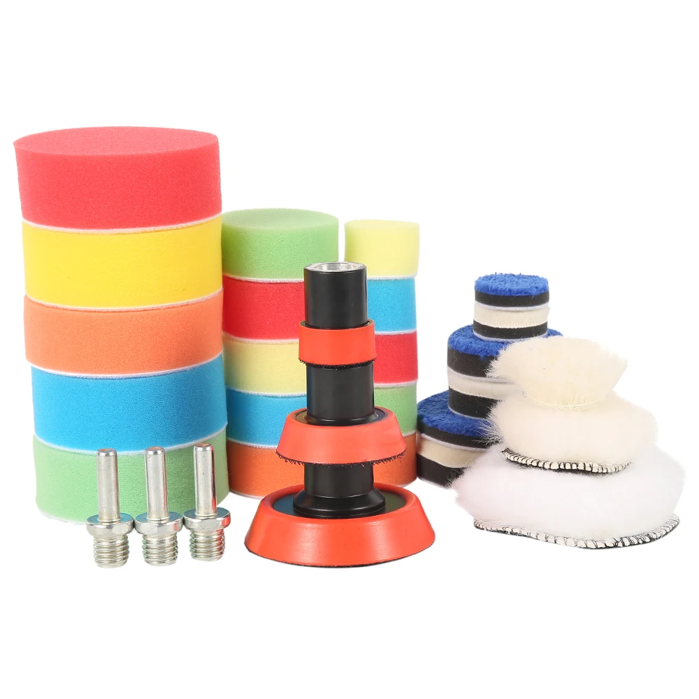 Склад в Великобритании/Италии/Чехии: около 2-8 дней Описание: Материал: губка + шерсть Количество: 30 шт. Диаметр: 30 мм/1 дюйм, 50 мм/2 дюйма, 76 мм/3 дюйма Резьба: M14 Примечание При ручном измерении допускается небольшая погрешность. Применение: полировка, вощение, шлифовка Описание подсветки -Можно использовать воздушную или электрическую полировальную машину. -Подходит для полировки, вощения и шлифовки. -С резьбовой задней накладкой и адаптером M14. Упаковочный лист: 15 x полировальная подушка 3 ватные Полировальные Диски 3 синие Полировальные Диски 3 белые Полировальные Диски 3 липких диска 3 x M14 стержень адаптера