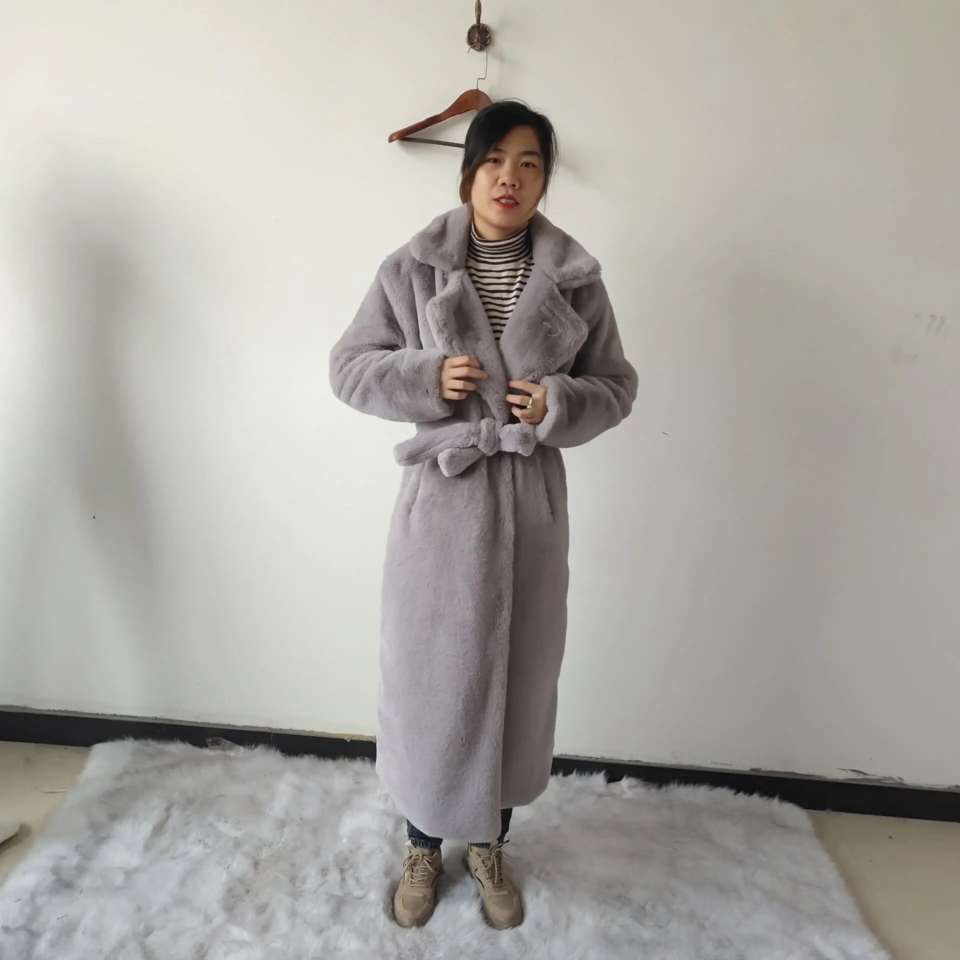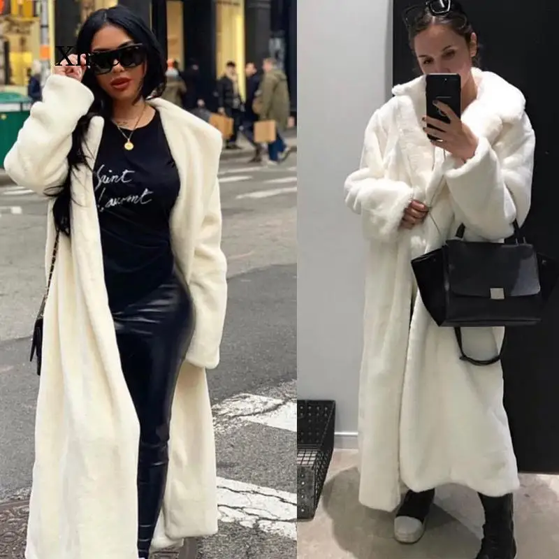 Зимнее женское пальто из искусственного кроличьего меха, Удлиненное пальто до колена, Свободное пальто с лацканами, толстые теплые женские плюшевые пальто