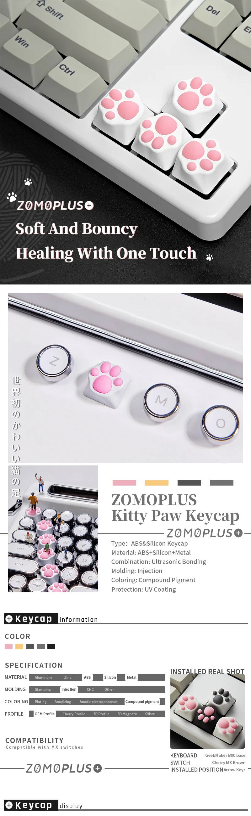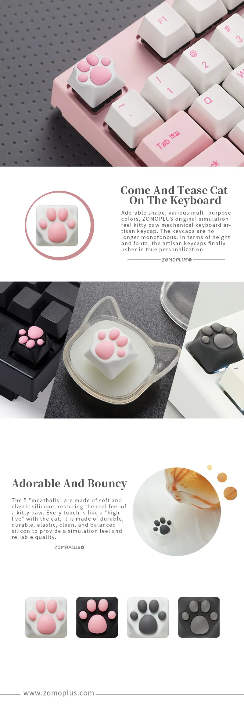 Колпачок для клавиатуры ZOMOPLUS, мультяшная механическая клавиатура, розовая, белая, Черная