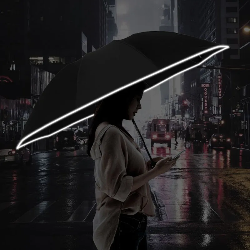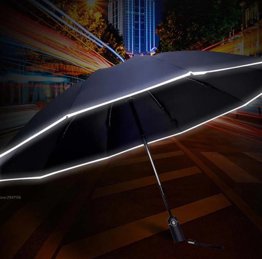 Зонтик без автоматической функции закрытия, видео только для демонстрации Этот Umbrella без светодиодный ленты, это светоотражающий тканевый ремень, он может отражать только светильник, Пожалуйста, знайте это.
