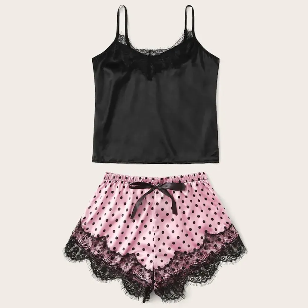 Пижамы для женщин, кружевной атласный беспроводной бюстгальтер, камзол, Пижама, одежда для сна с бантом, шорты, комплект, одежда для сна, пижама для отдыха