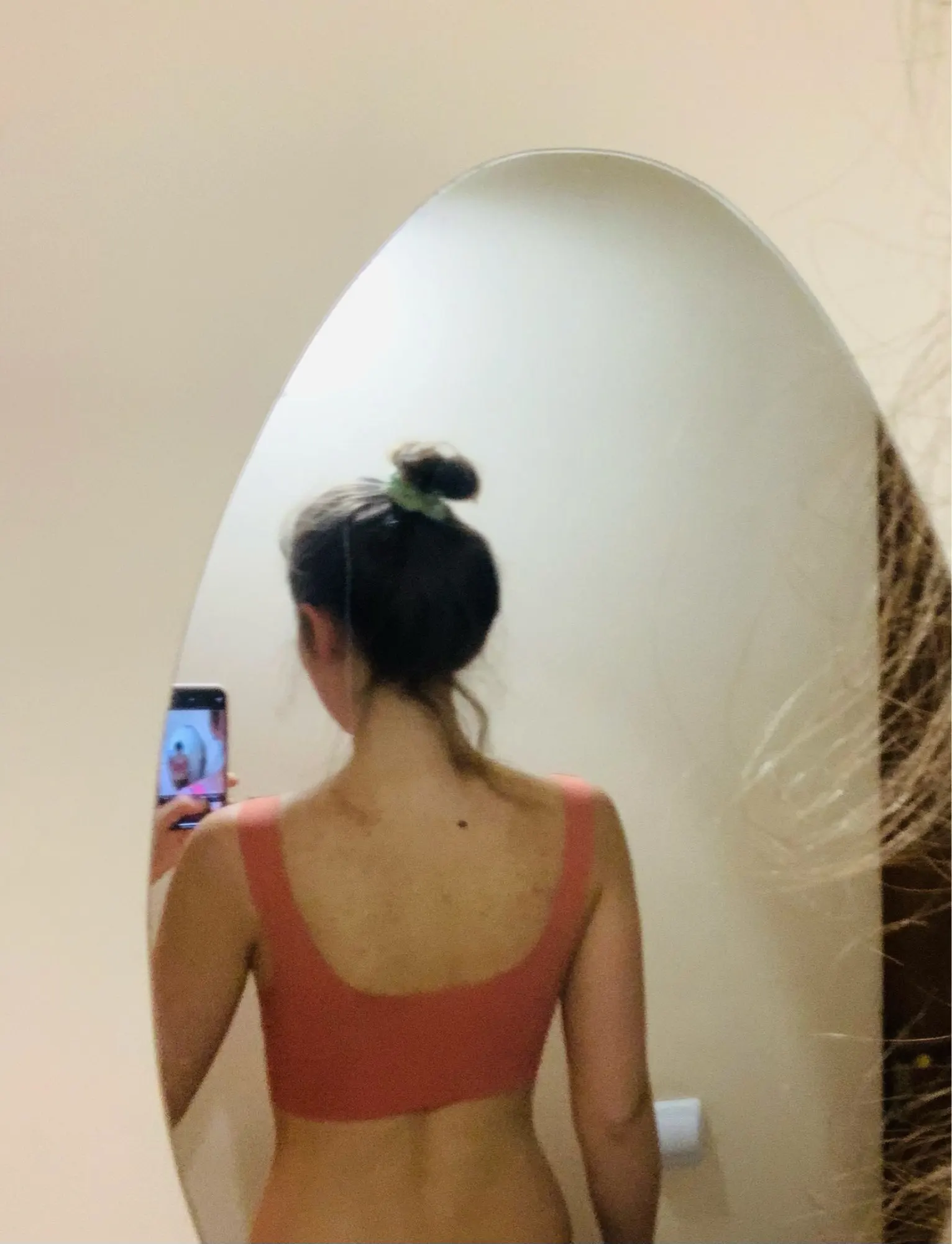 Тонковатый материал, но мне для утренних пробежек подходит. Размер я взяла L на обхват груди 90, немножечко великоват оказался. Можно вытягивать подкладки через разрез посредине. Никакого запаха нет, нитки тоже не торчат