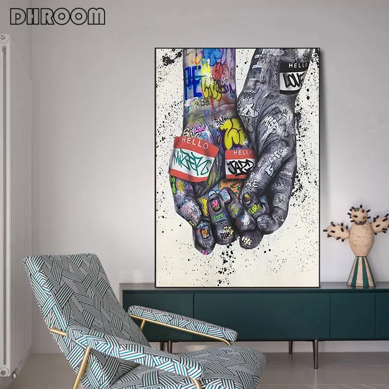 Уличная Картина граффити на холсте поцелуй руки настенные постеры и...