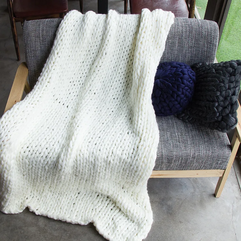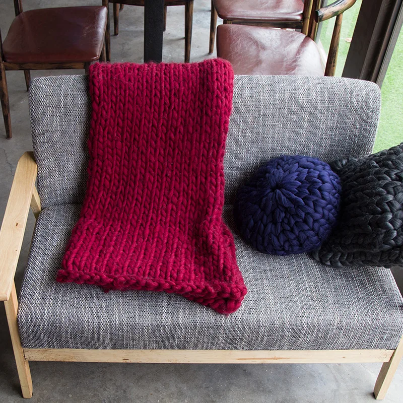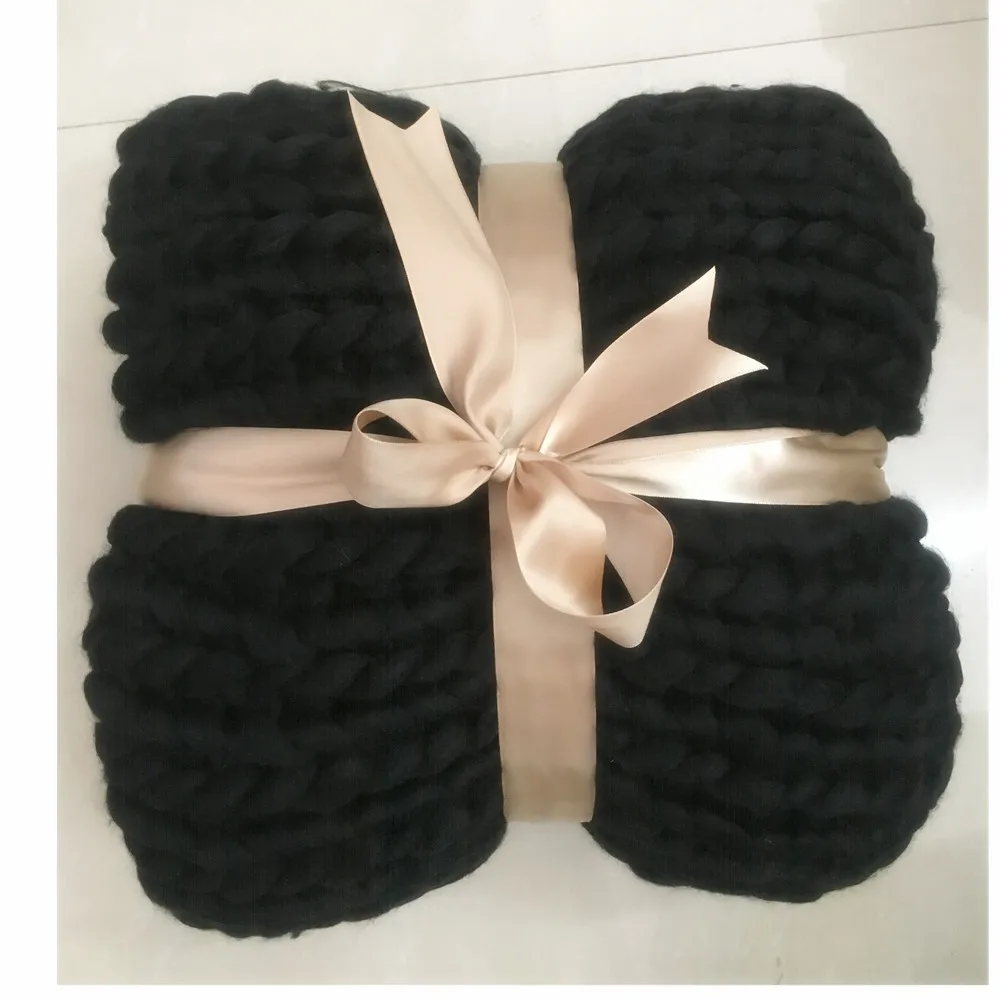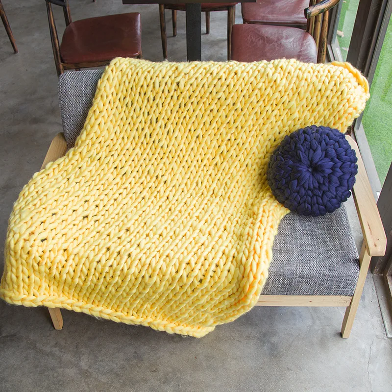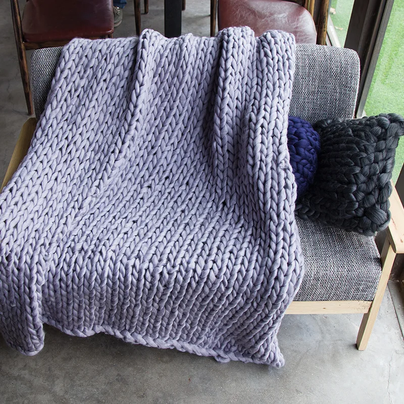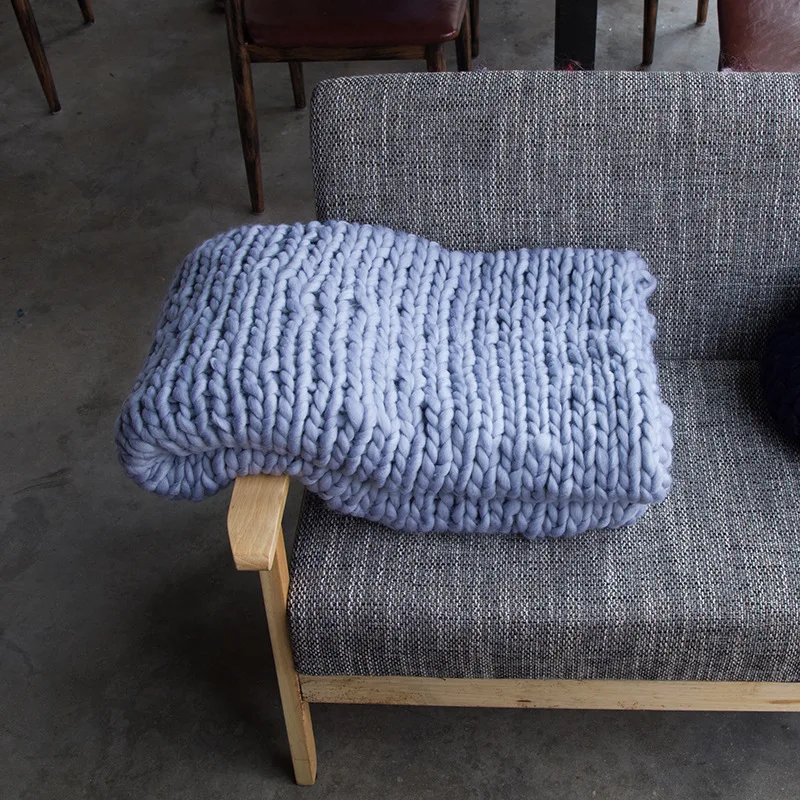 Одеяла ручной вязки, толстая пряжа 6 см, ковер из мериноса, объемны...