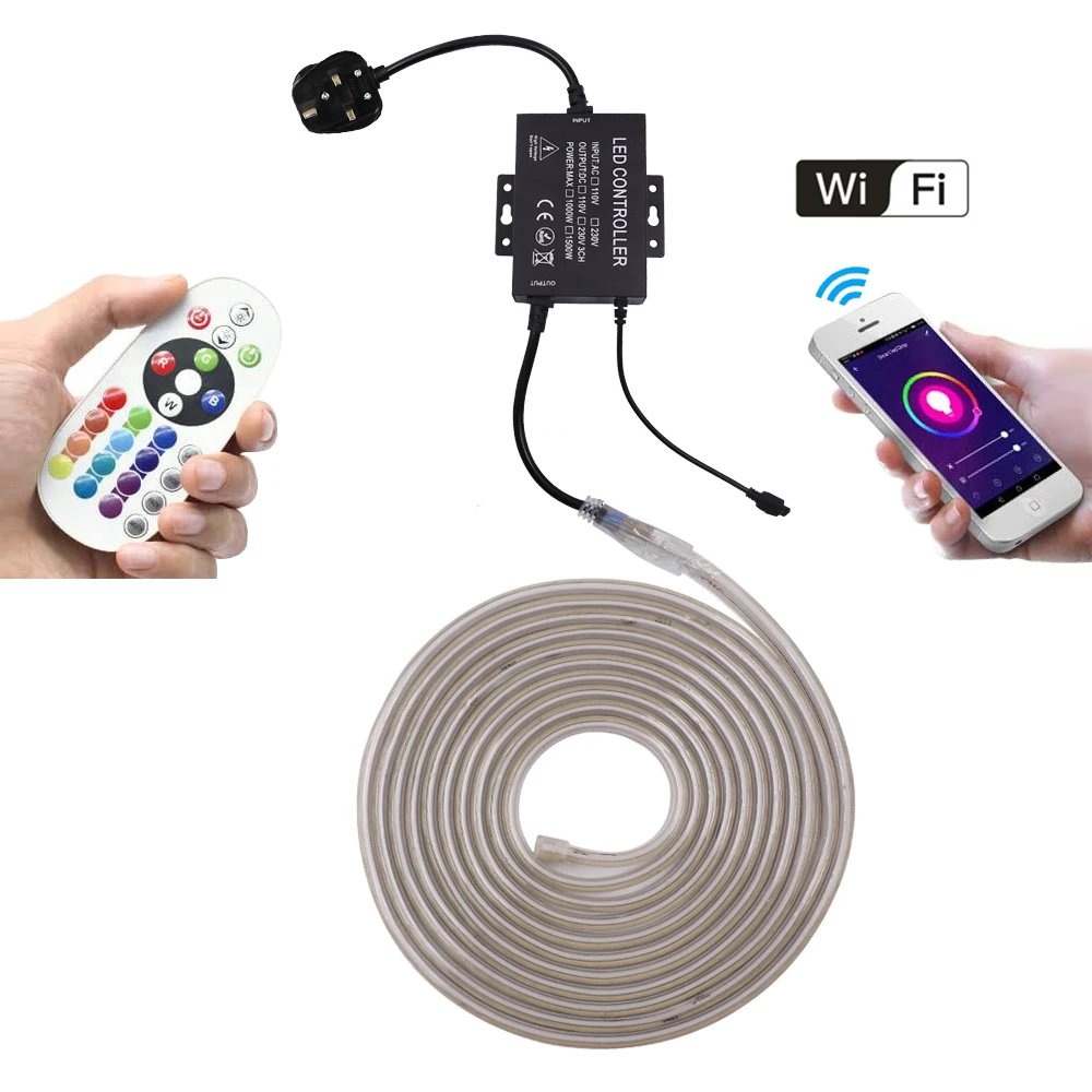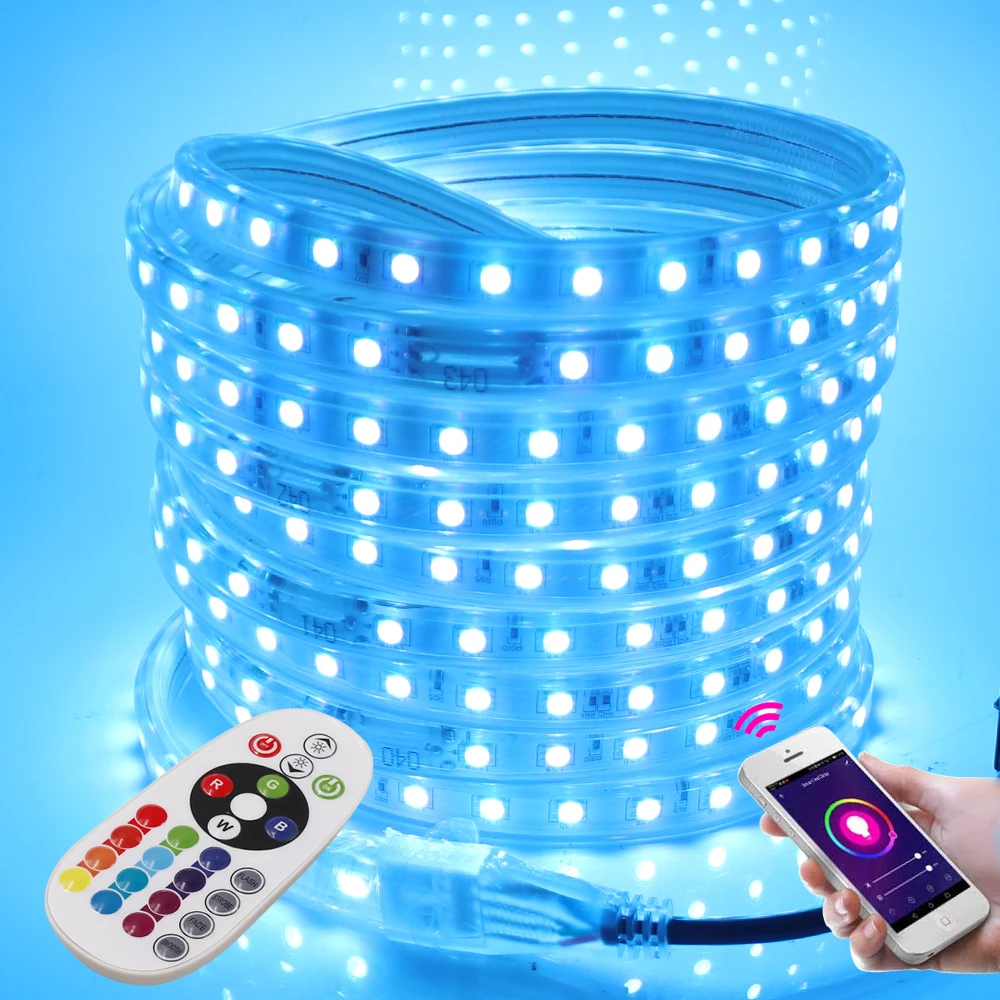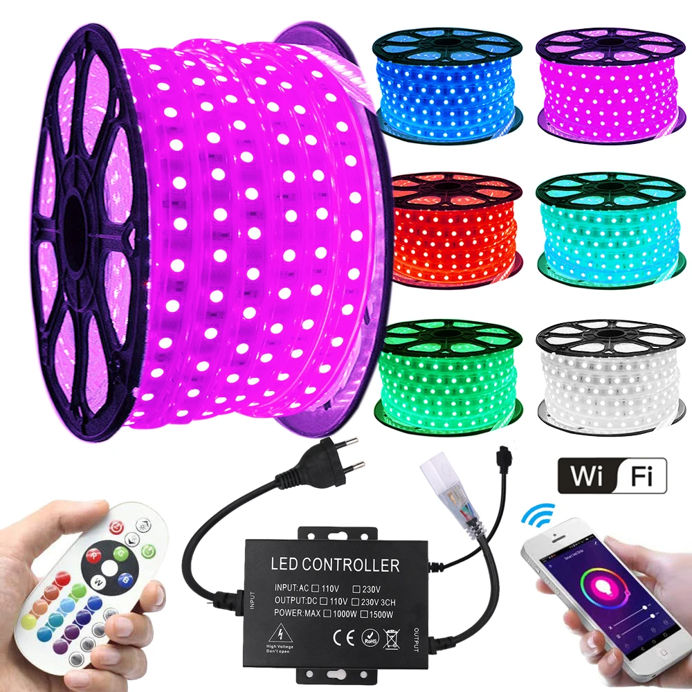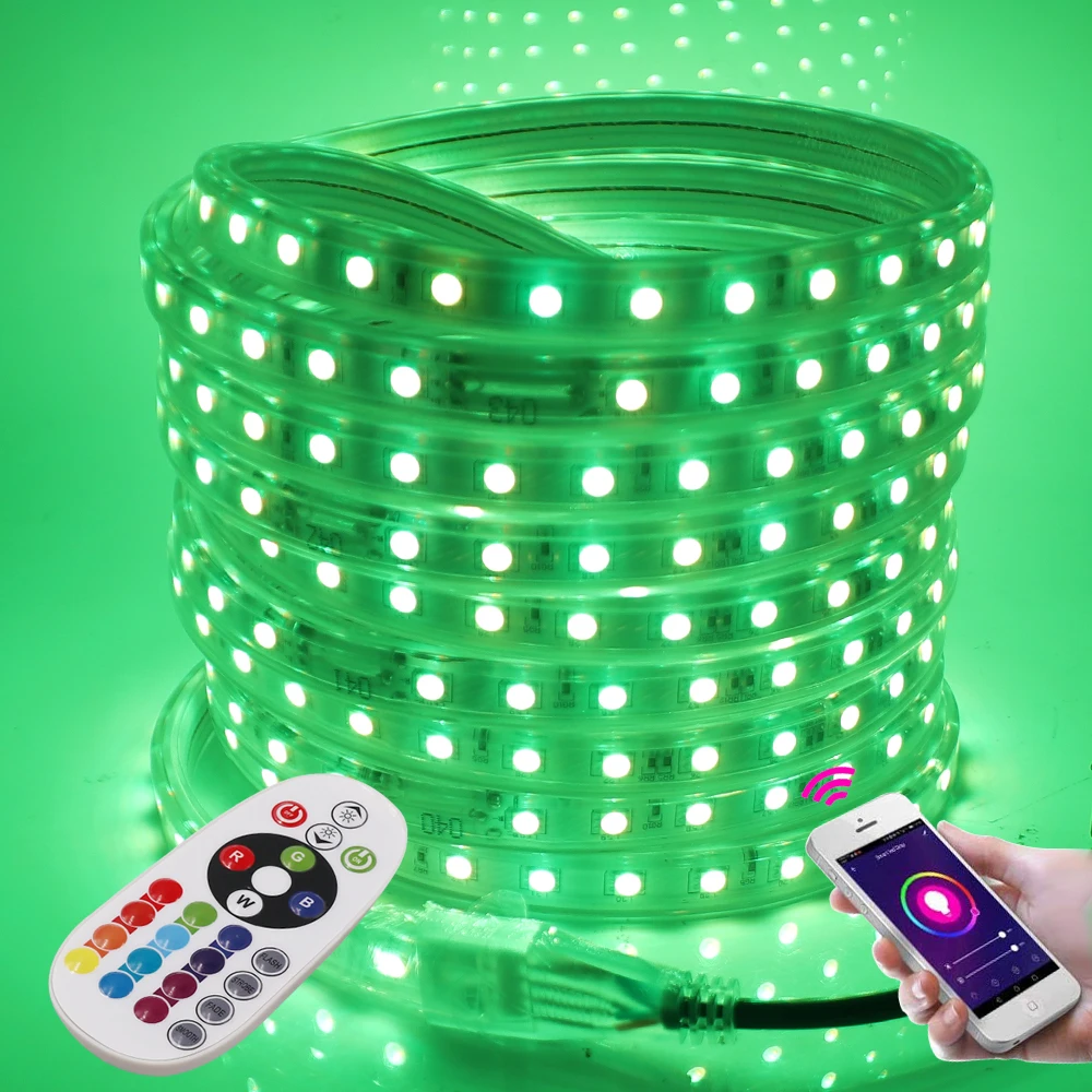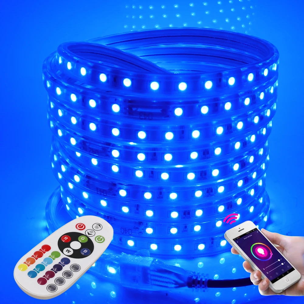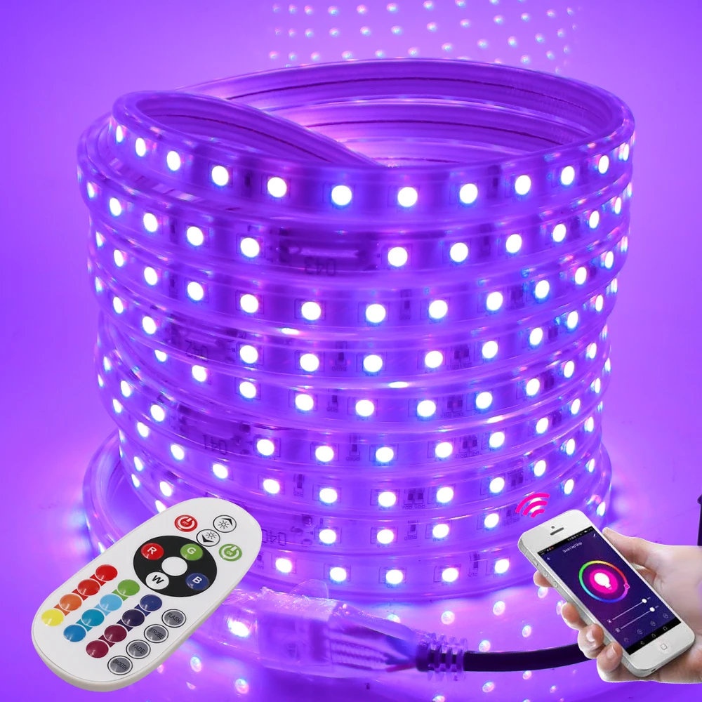 Светодиодная лента с Wi-Fi, 5050, 220 В, RGB + пульт дистанционного управления 24 клавиши, 60 светодиодовм, IP67, водонепроницаемая гибкая светодиодная лента, e, EU, UK, US, AU