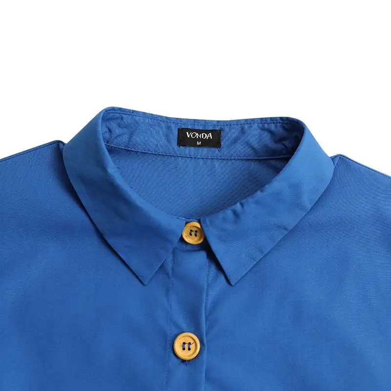 2022 VONDA осеннее платье-рубашка, повседневные однотонные платья с отложным воротником и рукавом до локтя, богемные платья, пляжный Сарафан
