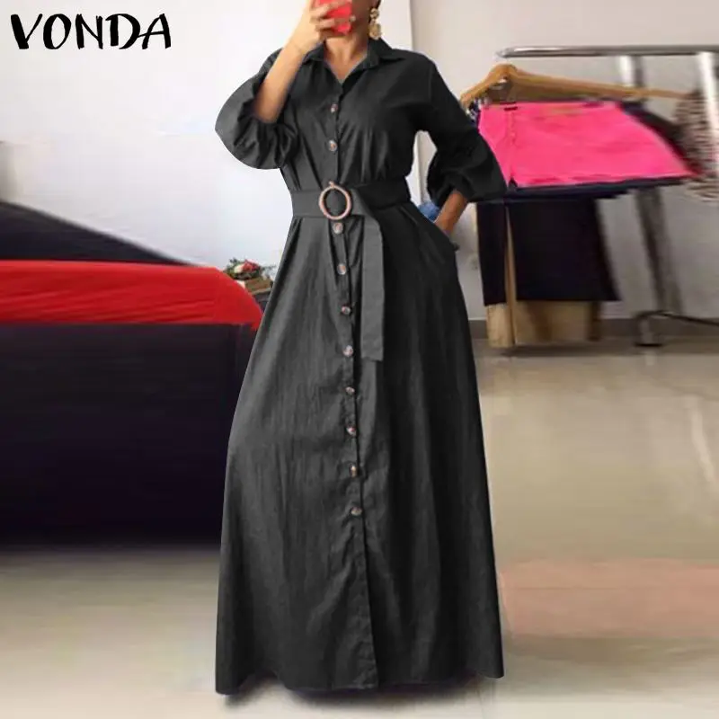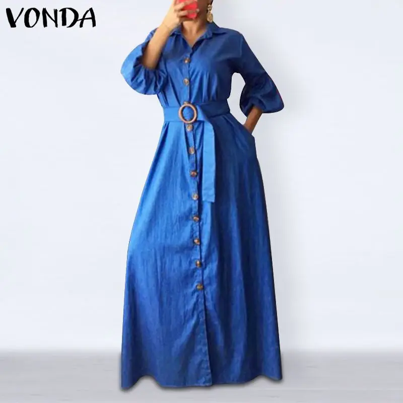 Женский сарафан VONDA 2022, Повседневное платье макси на пуговицах ...