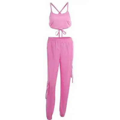Женский летний топ Zoulv 2021 с открытой спиной, короткий топ и брюки-карго, уличные костюмы, Повседневная розовая спортивная одежда, комплект из 2 предметов