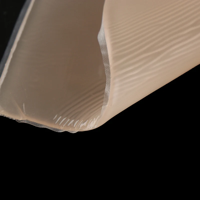 5. Как только он высохнет, поместите силиконовую прокладку обратно на пластиковый лист, чтобы защитить его клей. Примечание: Не используйте раздраженную, поцарапанную или сгоревшую кожу.