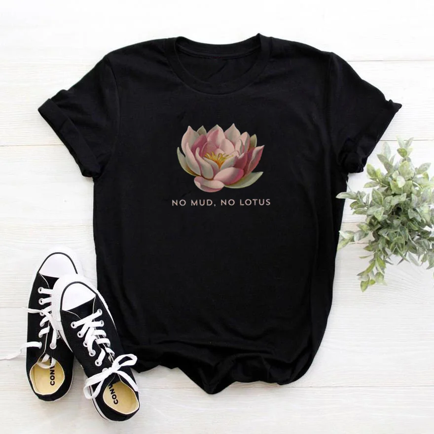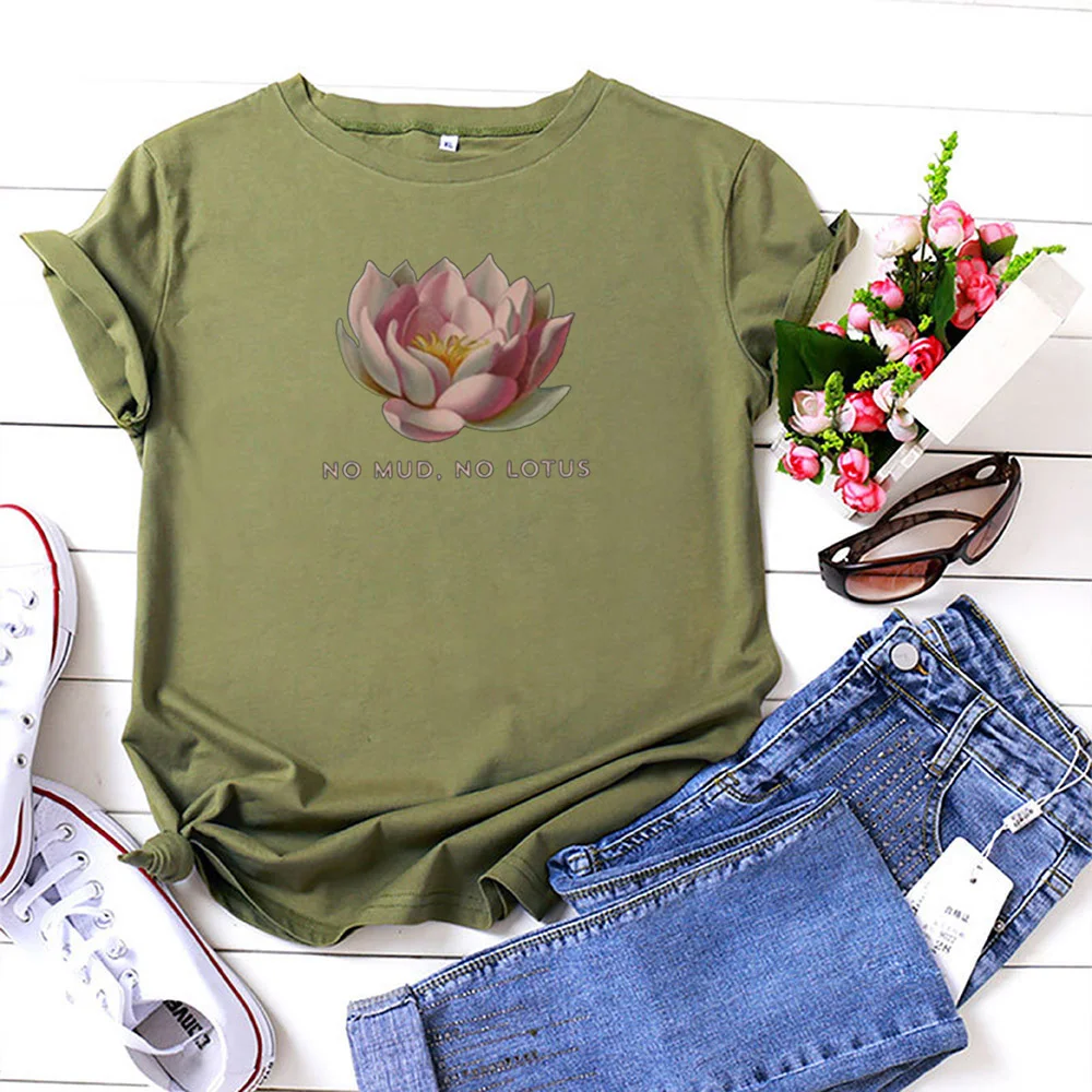 Без грязи без лотоса женская футболка с коротким рукавом и О-образным вырезом Футболка для женщин Свободные повседневные футболки Femme эстетика узор футболка для женщин
