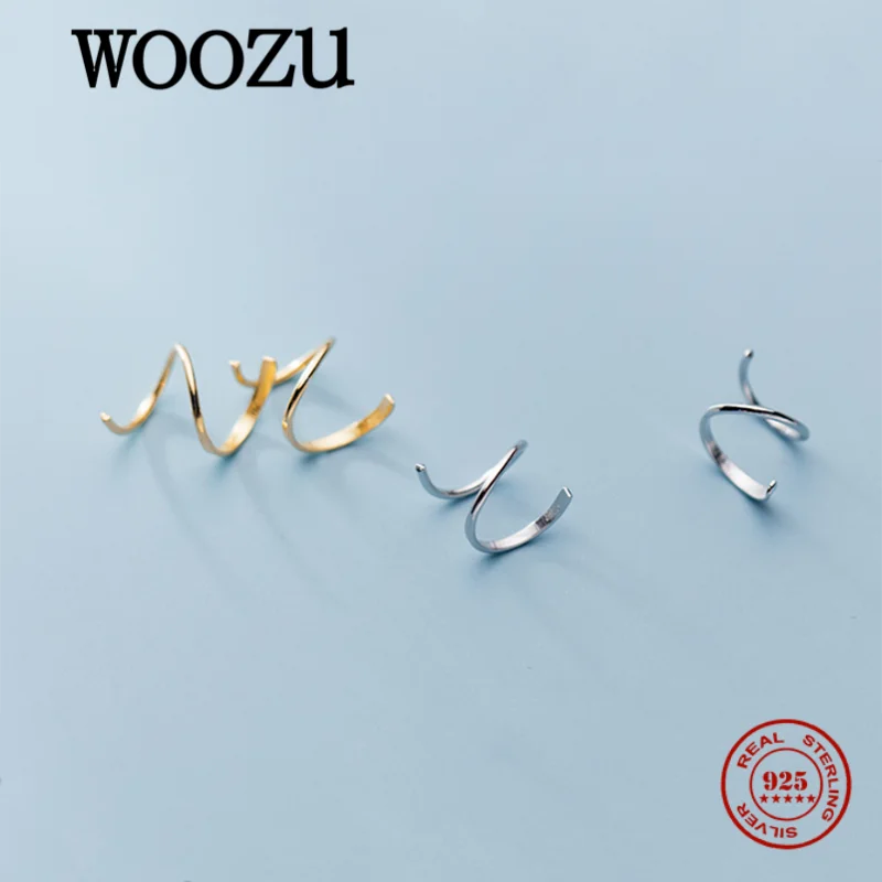 WOOZU реальные 925 стерлингового серебра Простая спираль, стилизованные под змею для ушей, для женщин, платье без рукавов для девочек клипсы для ювелирные изделия подарок аксессуары