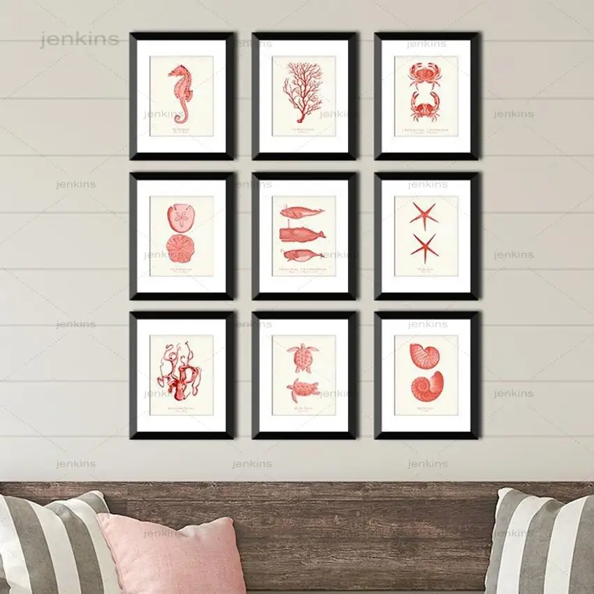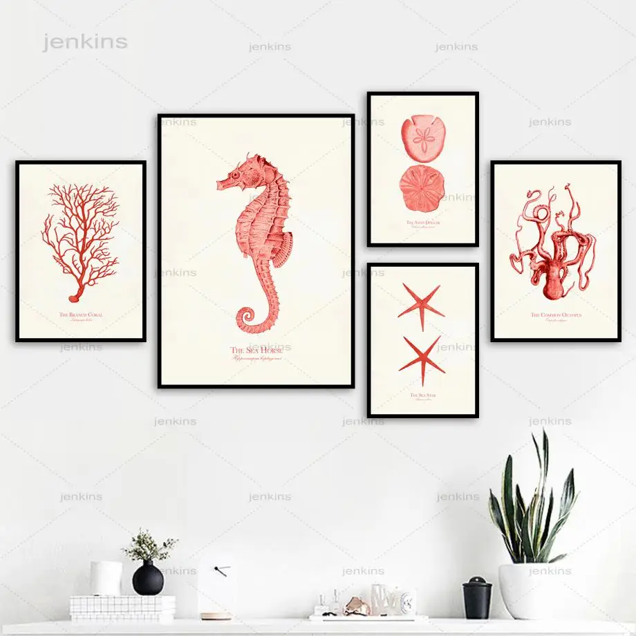 Красная морская жизнь Морская звезда Осьминог настенная Картина на холсте скандинавские плакаты и принты настенные картины для гостиной домашний декор