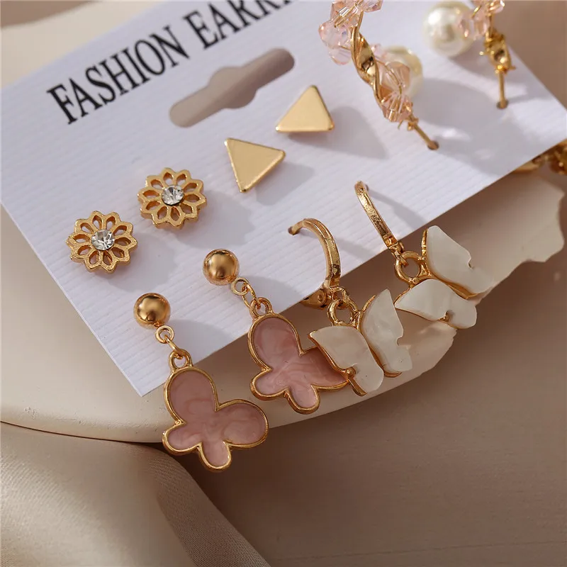 Винтажные акриловые розовые серьги-бабочки 17 км, Комплект сережек для женщин, милые геометрические жемчужные висячие серьги, 2021, новые свадебные украшения, подарок