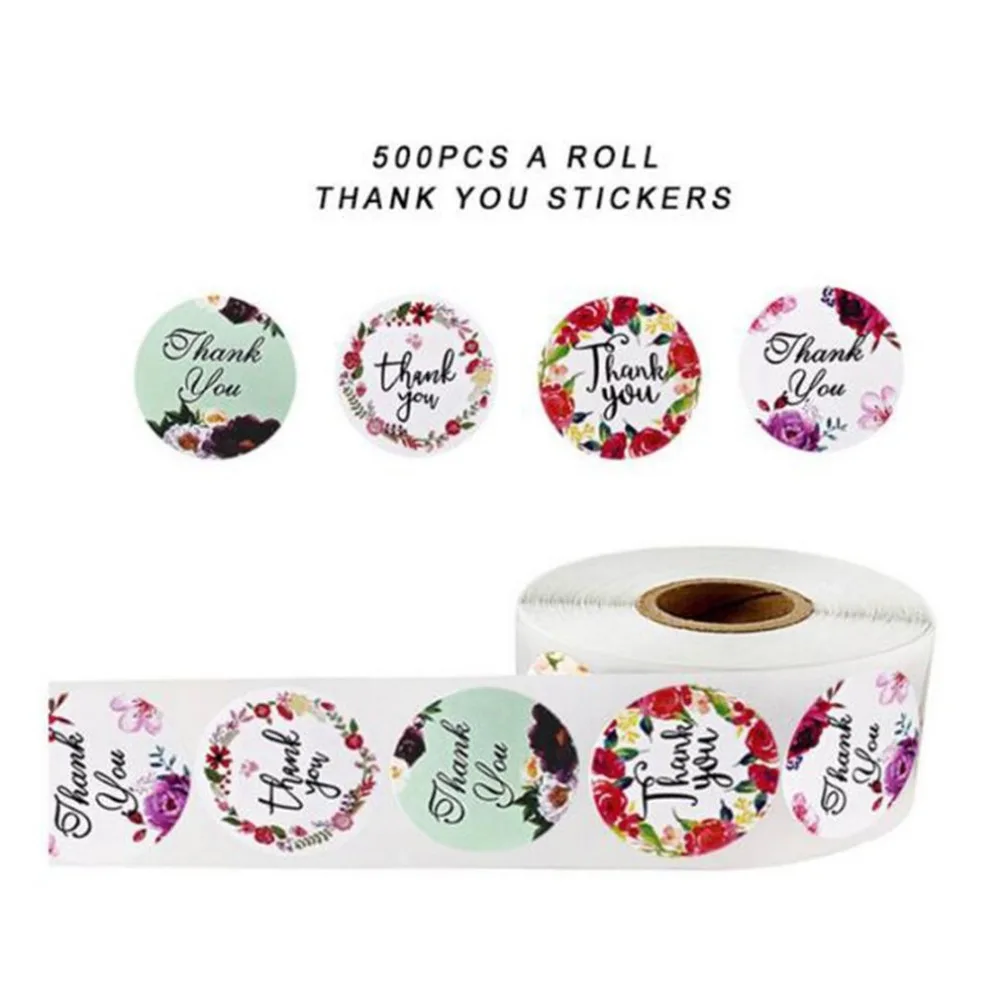 500 шт.рулон, рулон спасибо за ваш заказ, Цветочные наклейки, праздничные свадебные декоративные наклейки, круглые самоклеящиеся этикетки для печати