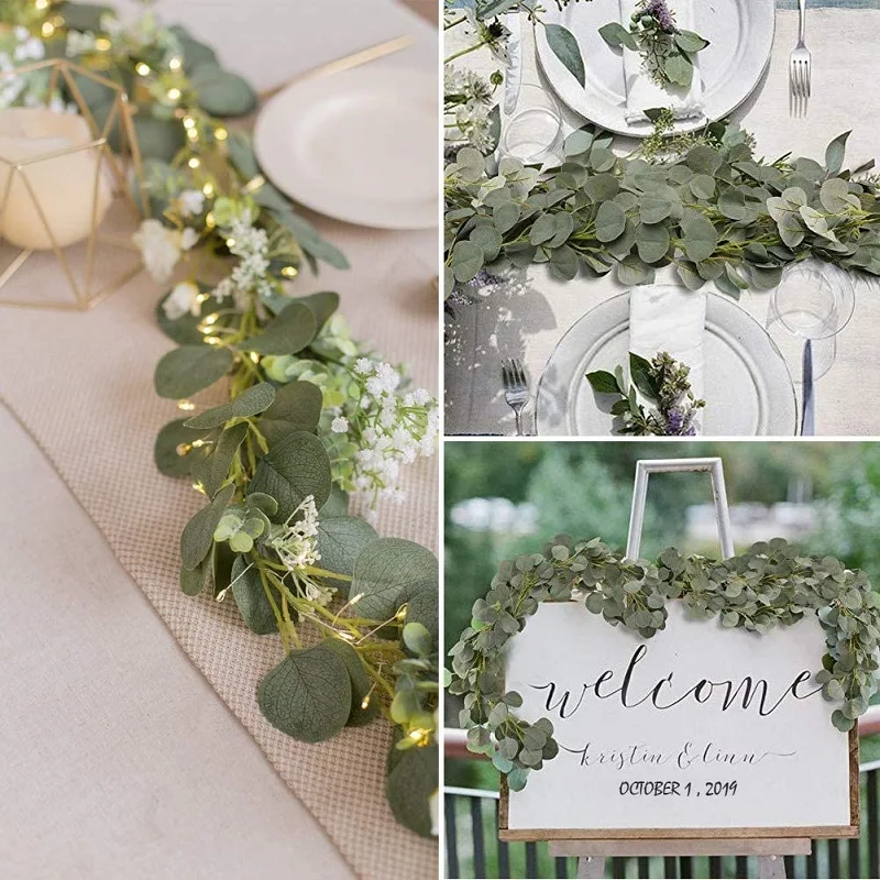 Искусственные зеленые листья эвкалипта, гирлянда, искусственные лозы из ротанга, искусственные растения, венок из плюща для свадебной вечеринки, украшение для стен дома
