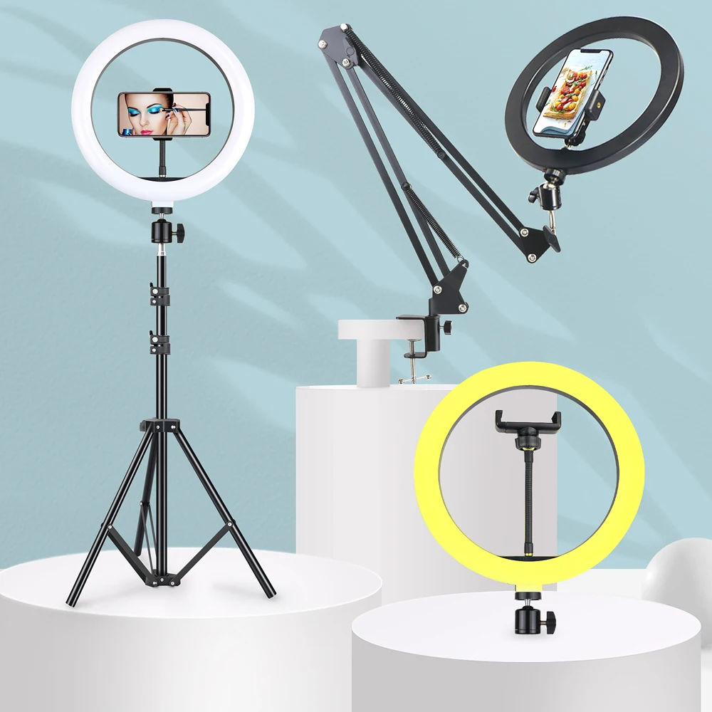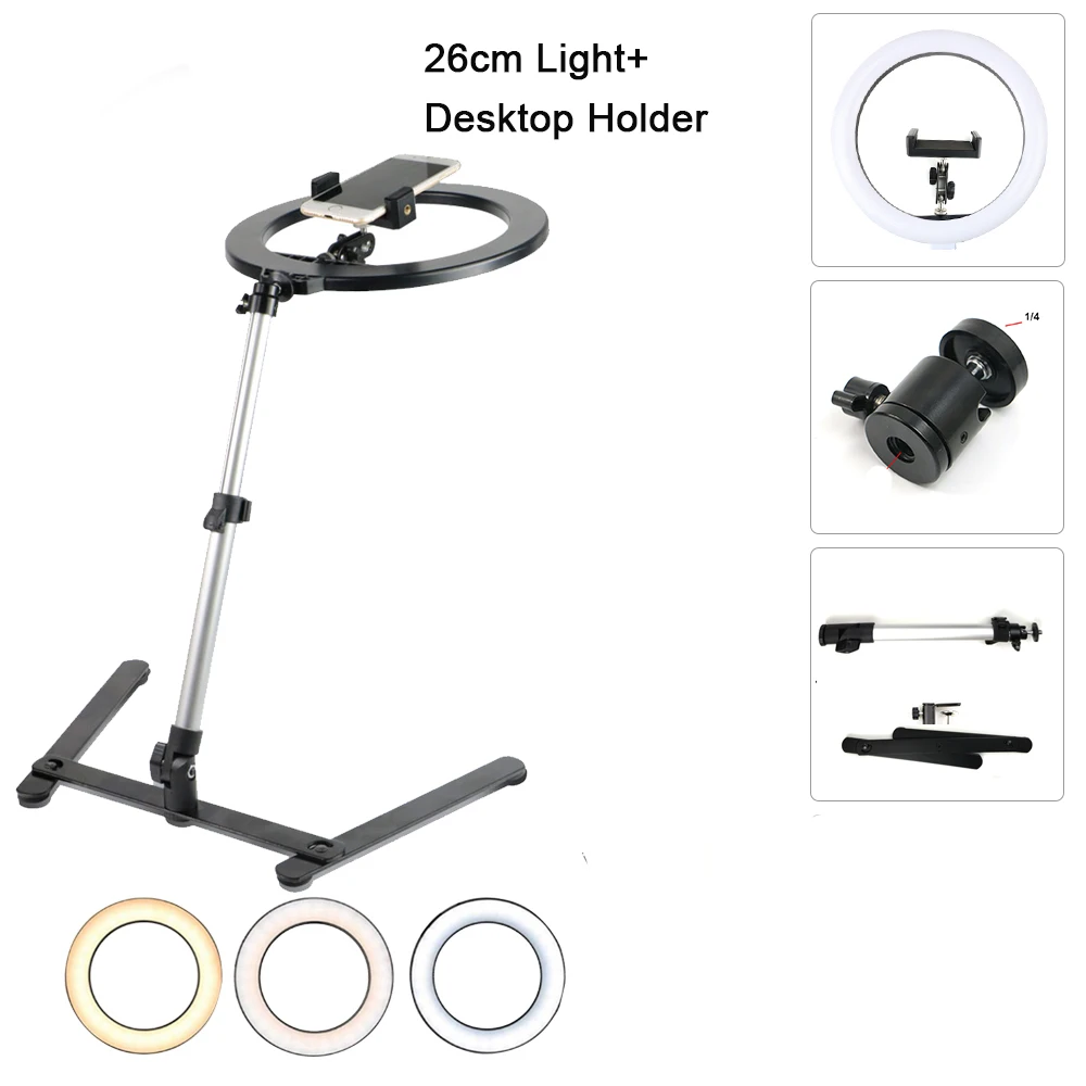 Светодиодный кольцевой светильник с регулируемой яркостью, USB светильник ПА для фотосъемки со штативом и длинной ручкой, настольная подставка для прямой трансляции видео, студийная лампа для заполнения