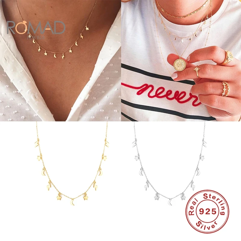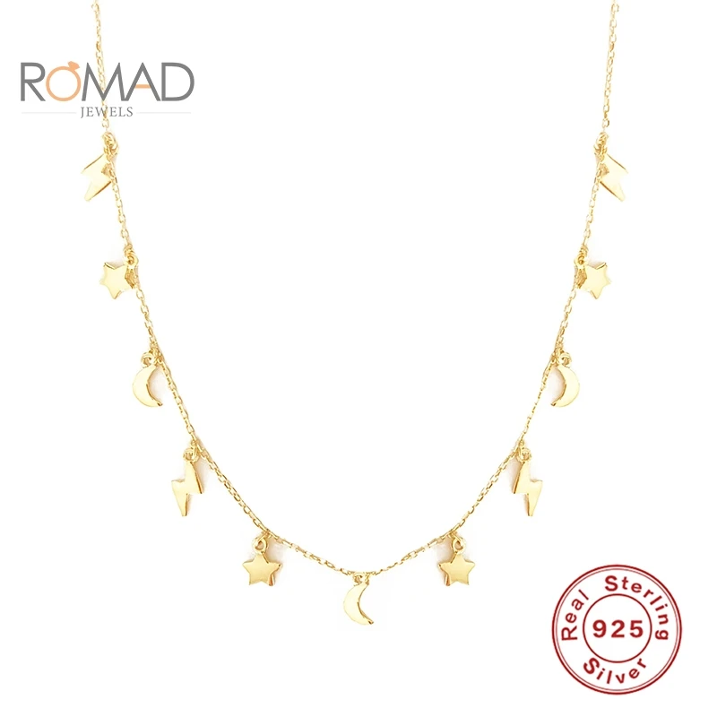 ROMAD колье из стерлингового серебра 925 пробы ожерелье мини Звезда Луна молния женское ключичное ожерелье цепочка золотое ожерелье женские ювелирные изделия