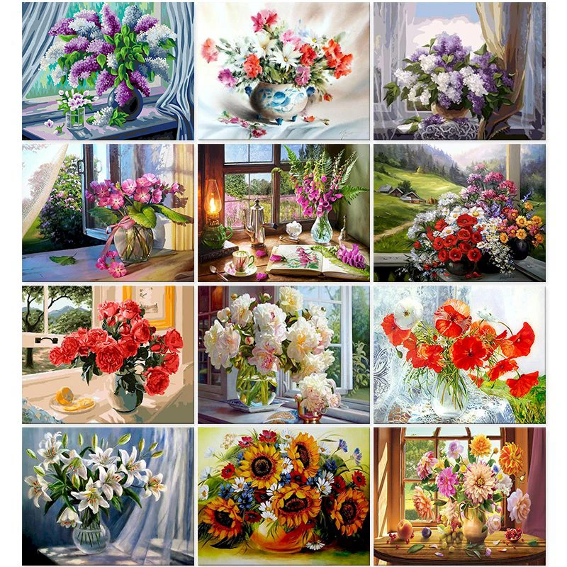 60x75cm Краски по номерам Наборы на холсте Цветы DIY Безрамное масляной Краски ing по номерам цифровых ручная Краски ing рисовать номер