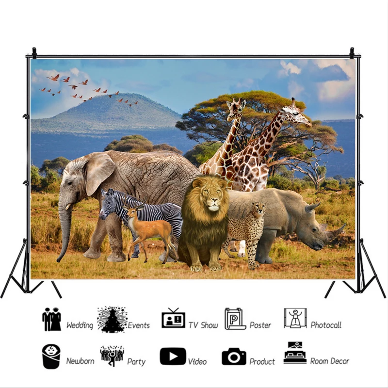 Виниловый фон для студийной фотосъемки с изображением Льва жирафа животных сбора весны африканской саванны