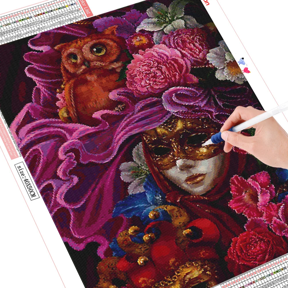 HUACAN 5D DIY алмазная живопись маски полностью квадратная круглая Алмазная вышивка, портрет мозаика Сова рукоделие Декор для дома