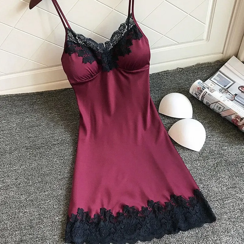 Женские атласные кружевные ночные рубашки, сексуальное женское бель...