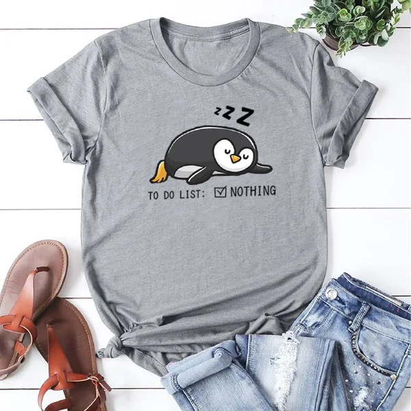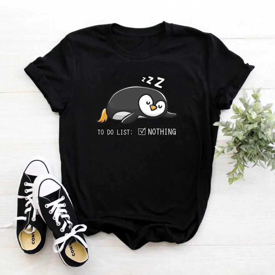 To Do List ничего футболка для женщин милый детский свитер с рисунком пингвина женские футболки Круглый женская футболка с короткими рукавами, Повседневная модная футболка для женщин
