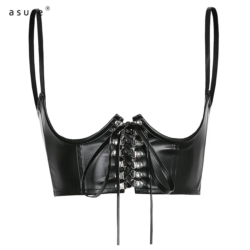 Готический корсет из искусственной кожи, женский укороченный топ на...