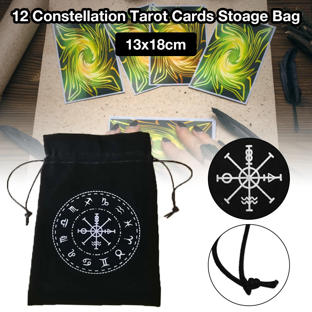 Бархатная сумка для хранения Таро 13x18 см, 12 созвездий, символов, защитная сумка на шнурке с вышивкой для карт и настольных игр