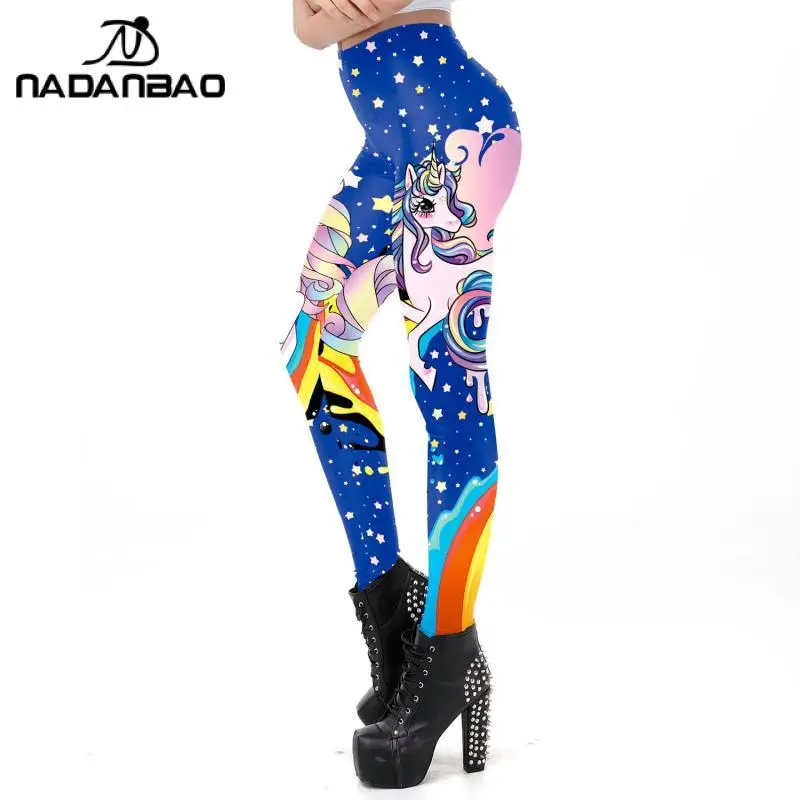 Женские радужные леггинсы NADANBAO, эластичные леггинсы с высокой талией, повседневная одежда на весну и осень