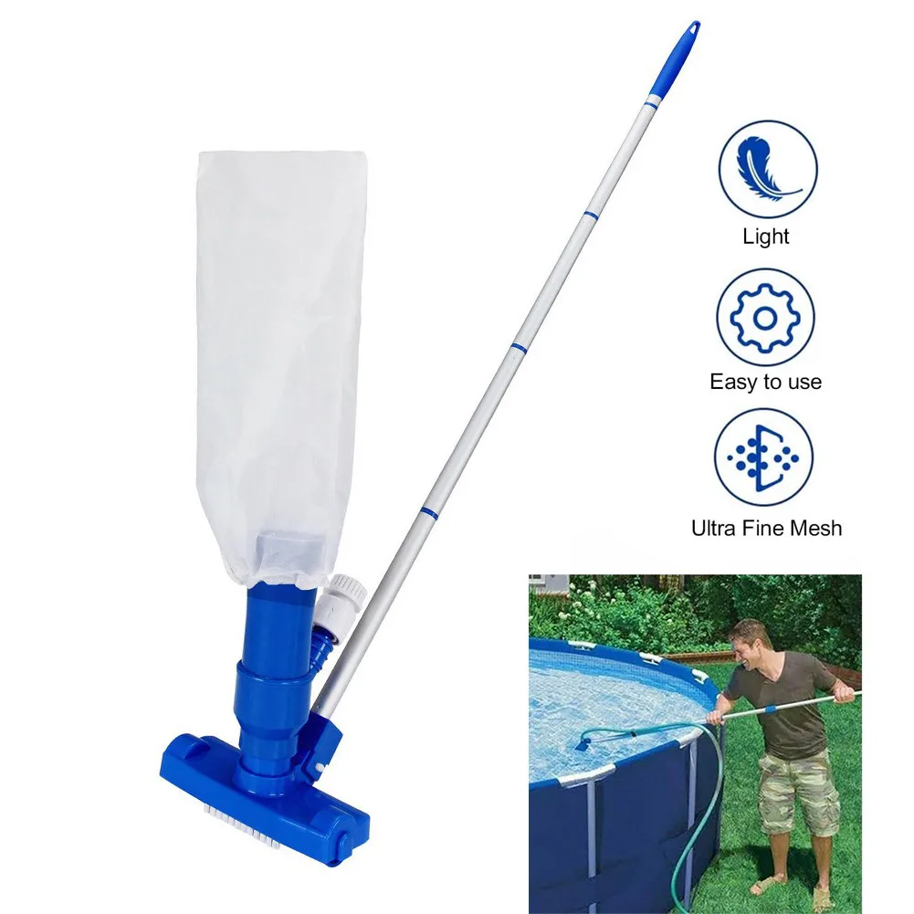 Портативный Вакуумный реактивный очиститель для бассейна, инструменты для спа-пруда, брызг воды, бассейна, спа, прудов, фонтановОсобенности:1. Отличный эффект очистки: давление воды из шланга создает эффект Вентури, вытягивая листья и другие мусор в мешок для сбора.2. Простота в использовании: высокое качество и отличная цена. Простой дизайн и простота в использовании. Подходит для стандартных телескопических полюсов. Крепится к стандартному садовому шлангу.3. Широкое применение: Этот пылесос отлично подходит для очистки спа, пруда, фонтана, надземных и разбрызгивающих бассейнов.4. Удобный дизайн: путем подключения к садовому шлангу, вакуумные подъемники грязи и мусора с легкостью. После того, как вода была очищена в мешке для сбора, она поступает обратно в бассейн.5. Посылка включает в себя: посылка продукта включает в себя 1 × пылесос для бассейна с кисточкой и сумкой.Описание:1. Подходит для стандартных телескопических полос.2. Крепится к стандартному садовому шлангу.3. Очиститель идеально подходит для наземного бассейна, спа, прудов и фонтанов.4. Вакуум работает с силой давления воды, входящего в вакуум, создавая действие Вентури, в котором затем вытягивает мусор и оставляет прямо в сетку. Этот пылесос отлично подходит для очистки спа-салона, пруда, фонтана, надземных и лужаек.5. Рабочий видео Адрес: https://www.youtube.com/watch?v=h-kDzRiNZaMХарактеристики:Название: бассейн спа пруд мини струйный пылесос с щеткой, сумкой и 48 "полюсомДлина основания: прибл. 4 '2"Ширина основания: прибл. 5"Материал: АБС-пластикЦвет: синийОбщая длина стержня бассейна: прибл. 120 см/48 дюймовУпаковочный лист: