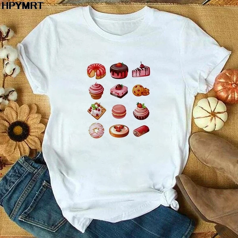 Футболка женская с мультяшным принтом, милая Дамская рубашка с граф...