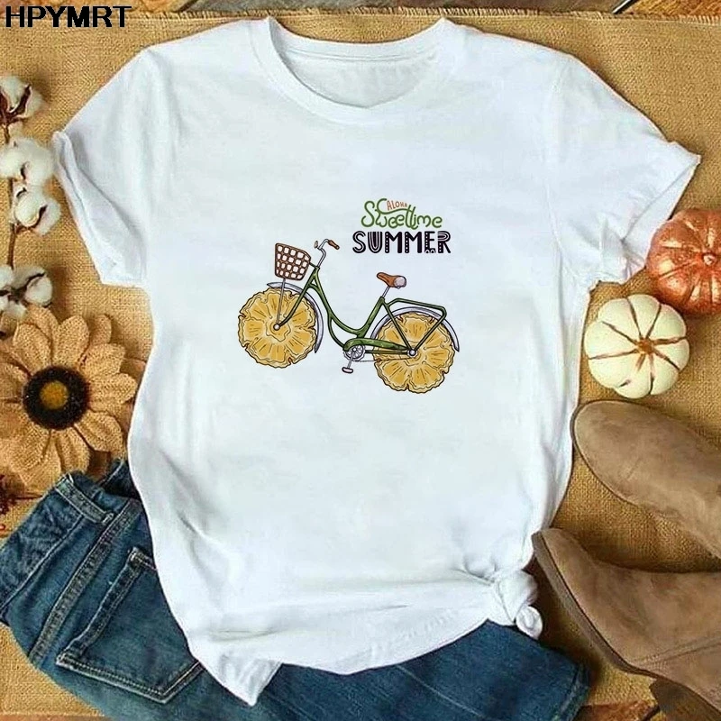Женская футболка с принтом Харадзюку, Элегантная футболка с принтом...
