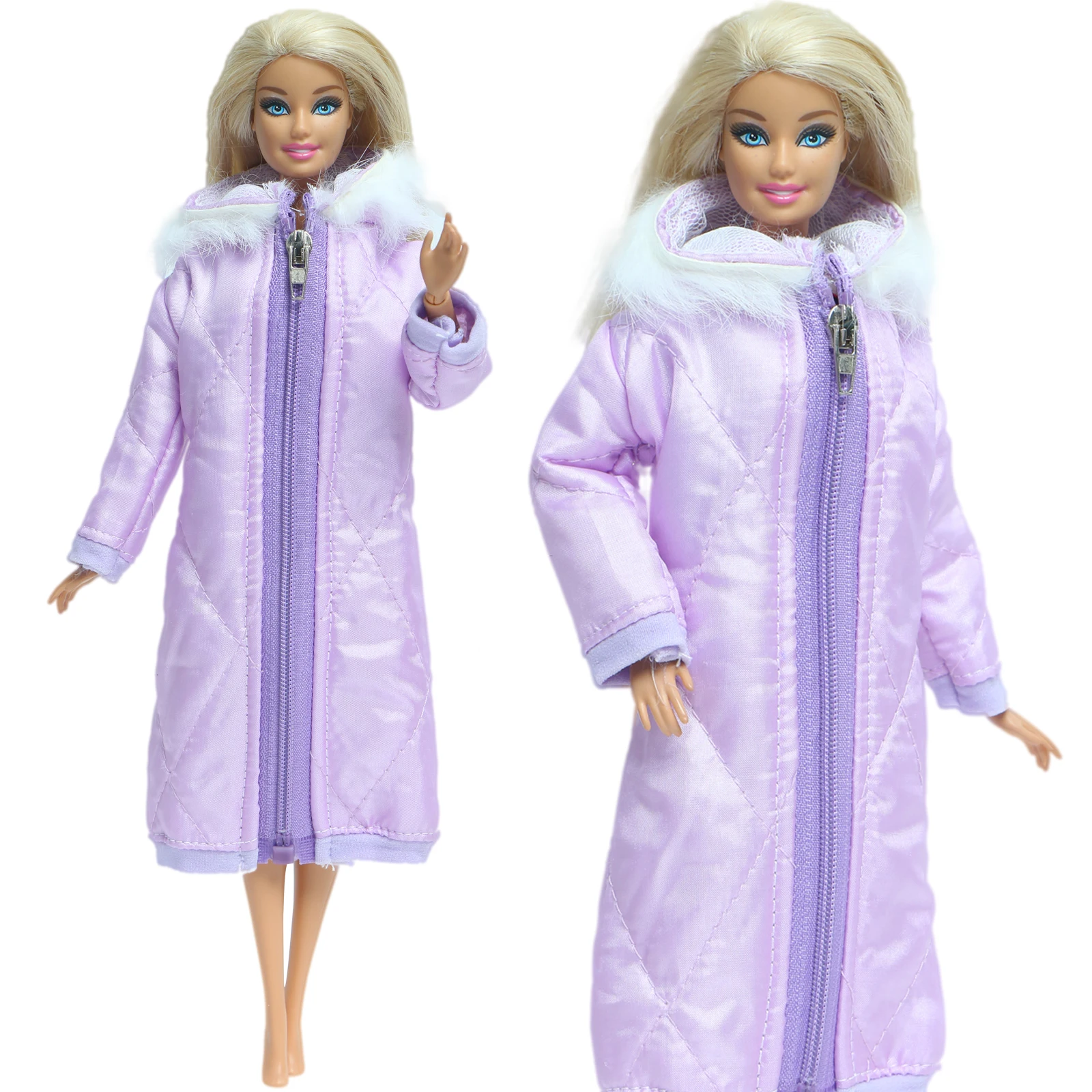 Высококачественное пурпурное пальто, хлопковое платье, юбка с шапкой, зимняя одежда, парка, куртка, Теплая Одежда для куклы Барби 16, аксессуары для игрушек
