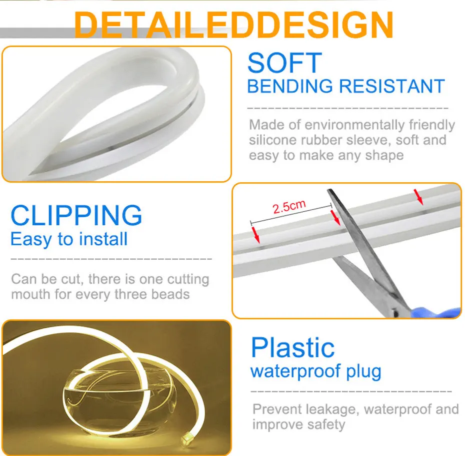 Светодиодный неоновый светильник SMD2835 1 м-5 м для украшения