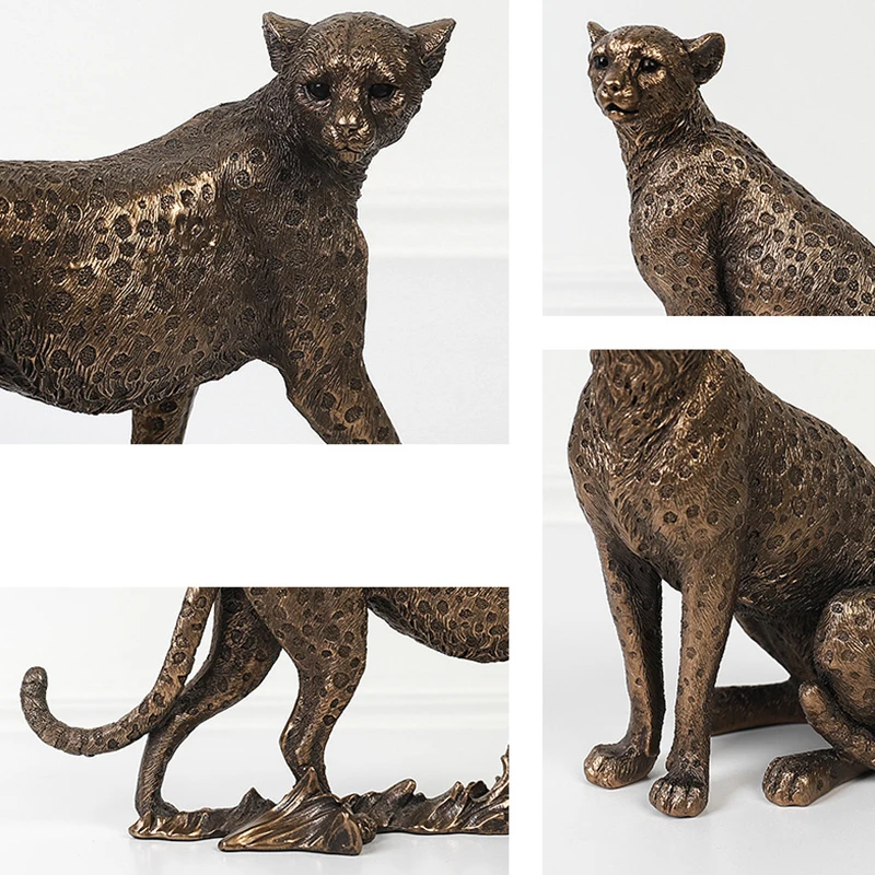Винтажная шикарная леопардовая скульптура в скандинавском стиле, современное искусство из смолы, украшения для дома, креативные статуи Пантеры, фигурки животных, домашний декор