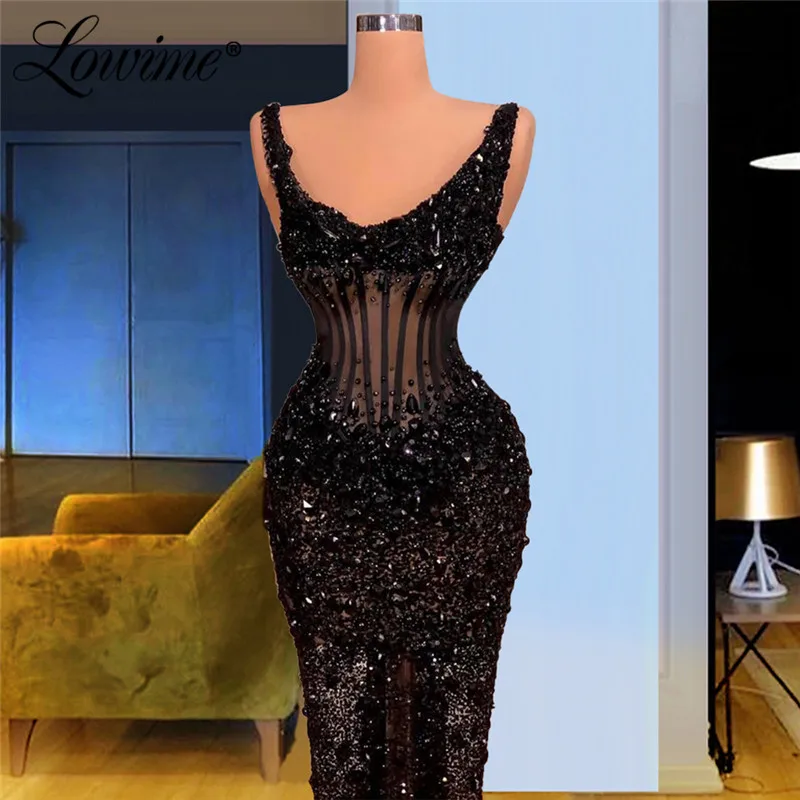 Бисером ручной работы вечернее платье черного цвета размера плюс русалки длинное платье для выпускного вечера по индивидуальному заказу Дубайский арабский вечерние платье для свадьбы халаты