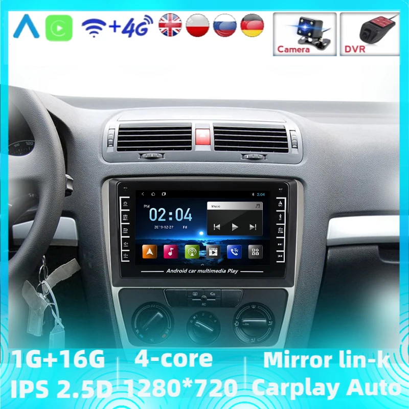 8-дюймовый автомобильный видеорегистратор, ADAS DVR, Android, мультимедийный видеоплеер 2Din для SKODA Octavia 2 A5 2004-2013 с разделенным экраном, GPS-навигацией, 1 Гб + 16 Гб