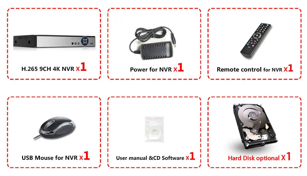 1 X сетевой видеорегистратор 4K 9ch NVR;