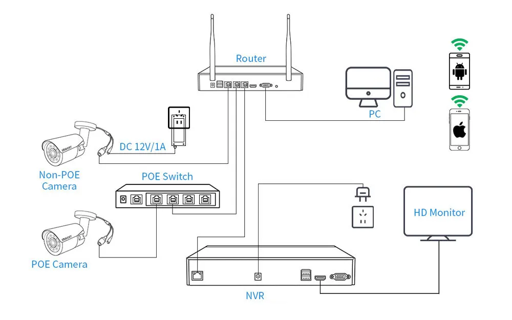 Ip-камера без POE/ip-камера POE работает с NVR без POE