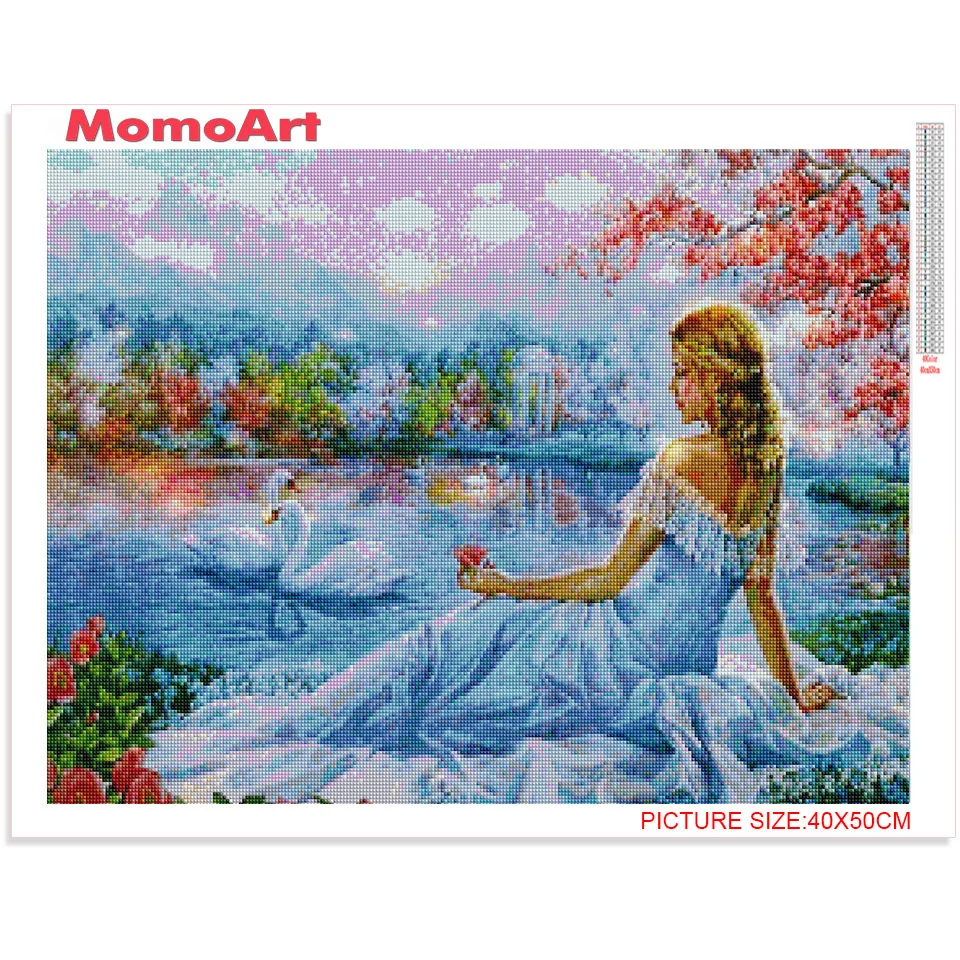 Набор для алмазной 5D вышивки MomoArt, картина с лебедями, полная выкладка из квадратных страз, мозаика аниме, Женский декор для стен из бисера