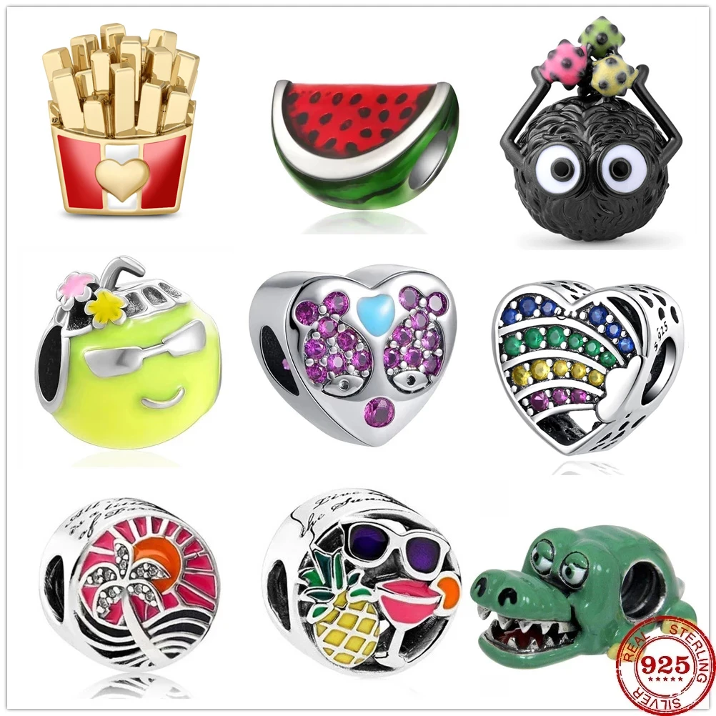 Новые летние бусины в виде авокадо, яблока, арбуза, пляжа, вечеринки, заката, подходят к оригинальным шармам Pandora, серебро 925, браслет сделай сам, женские Украшения