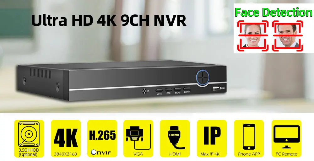 9CH NVR ResolutionH.265 9CH 4K NVR