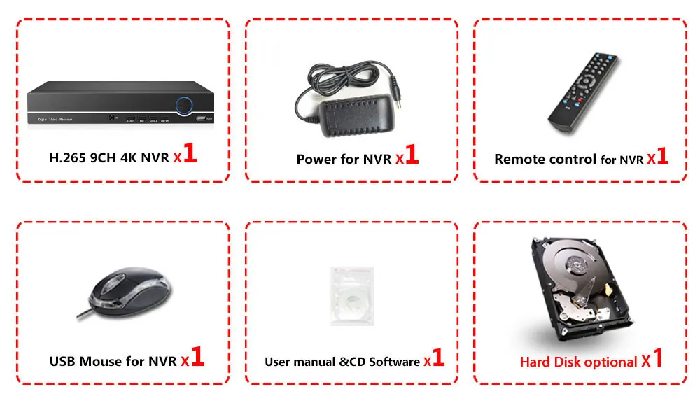 1 X сетевой видеорегистратор 4K 9ch NVR;