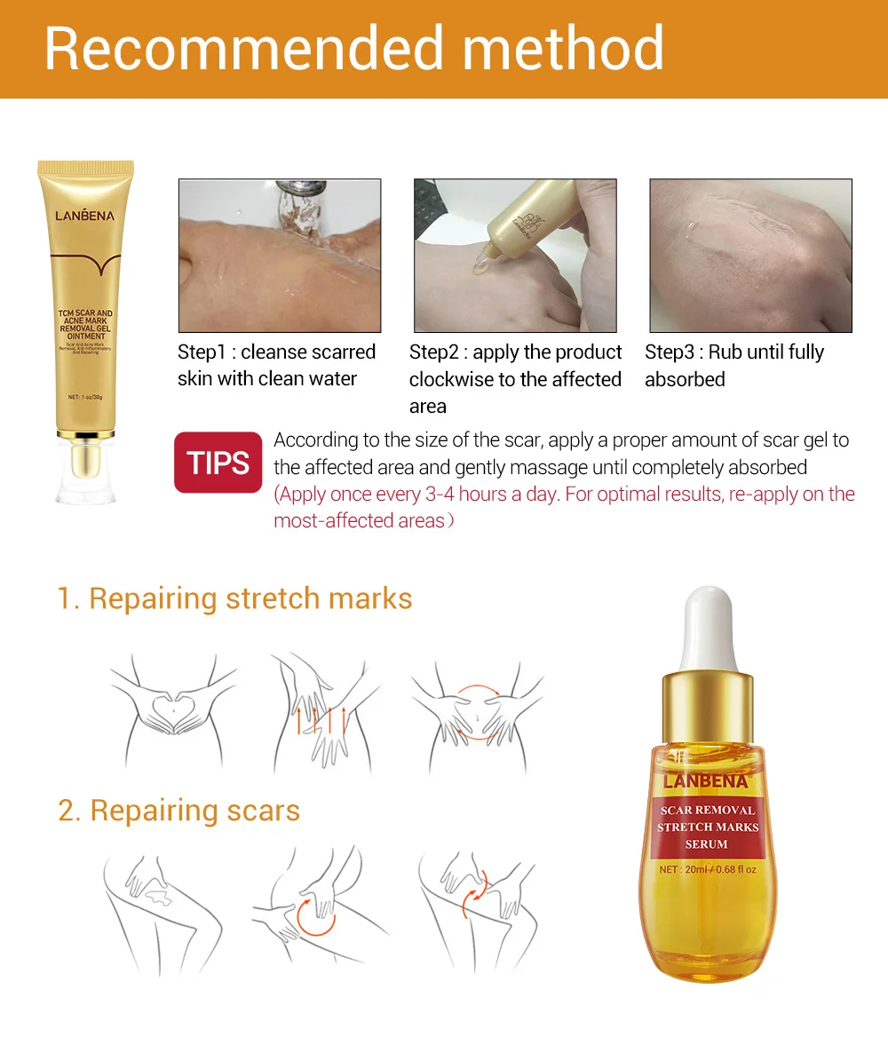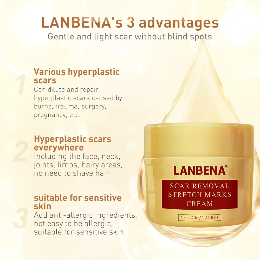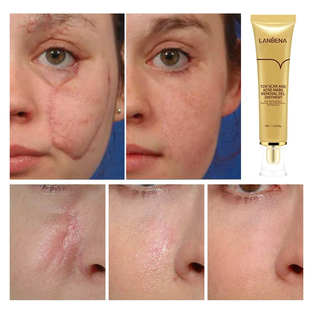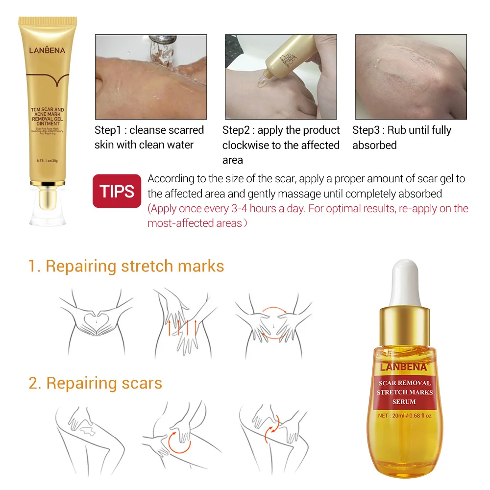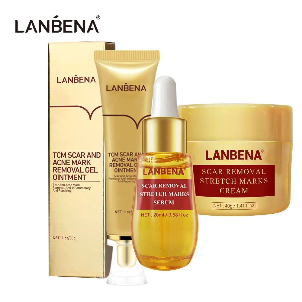 Набор для лечения шрамов кожи LANBENA, сыворотка для удаления шрамов, восстанавливающий крем, растягивающаяся субстанция от угревой сыпи, набор для ухода за лицом 3 шт.компл.
