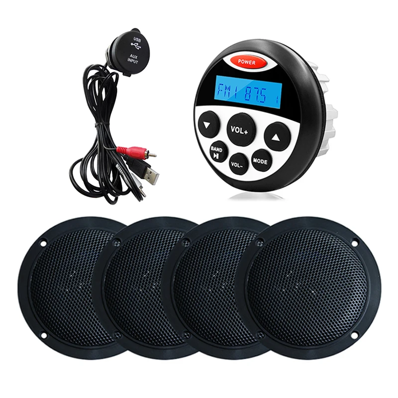 Морское водонепроницаемое радио, Автомобильный MP3-плеер speedfm AM + 2 пары 4-дюймовых морских динамиков + USB-кабель для лодки