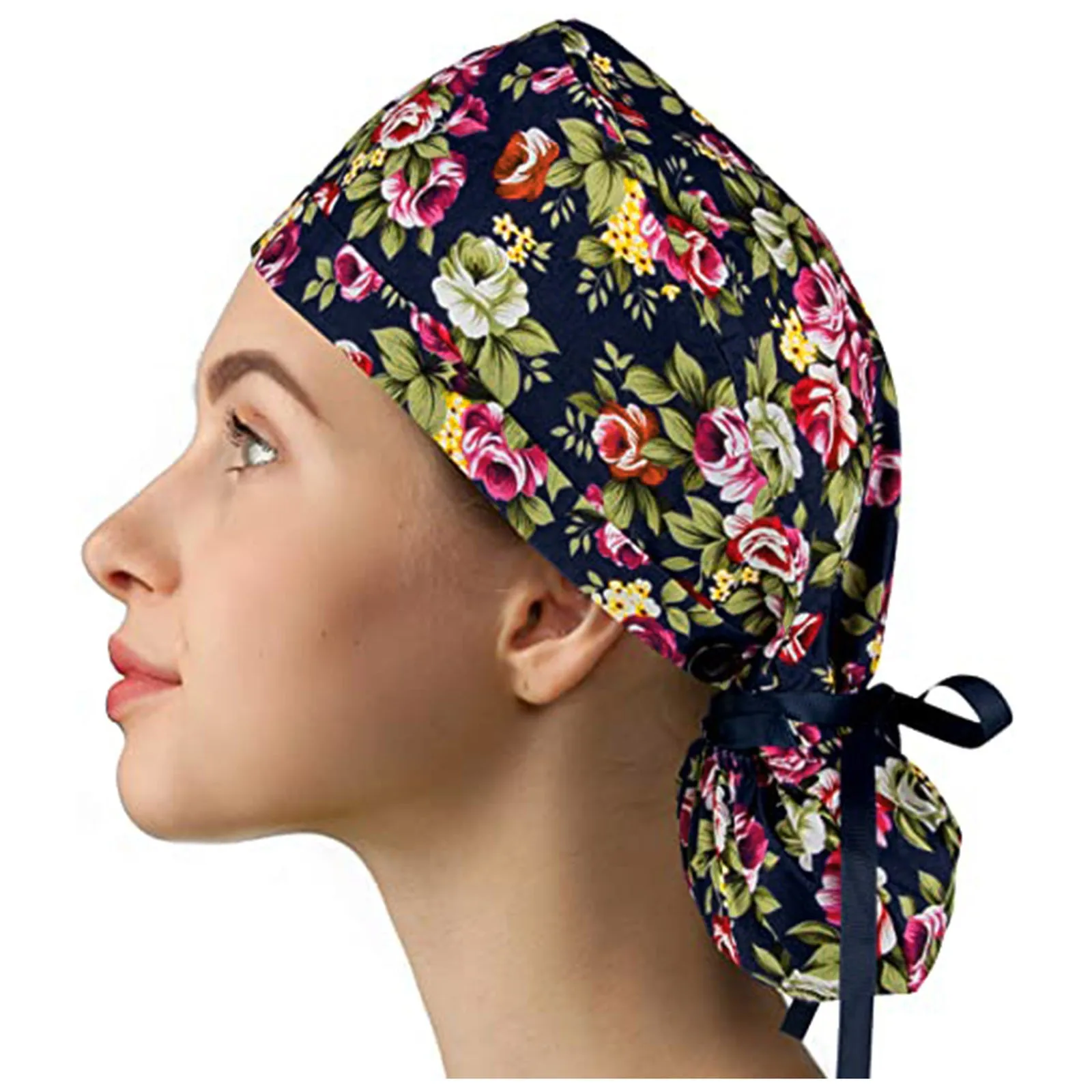 Женская длинная Рабочая шапка для волос с кнопками для маски Регулируемая хлопковая лента для галстука шляпа с повязкой на голову Scrub Cap gorro enfermera A20
